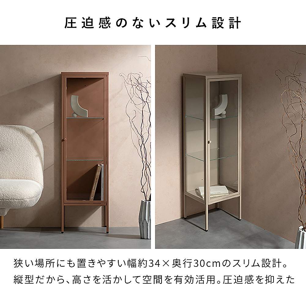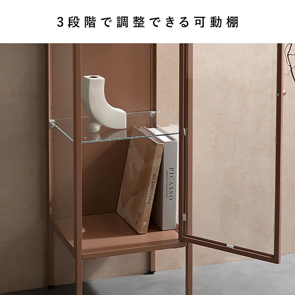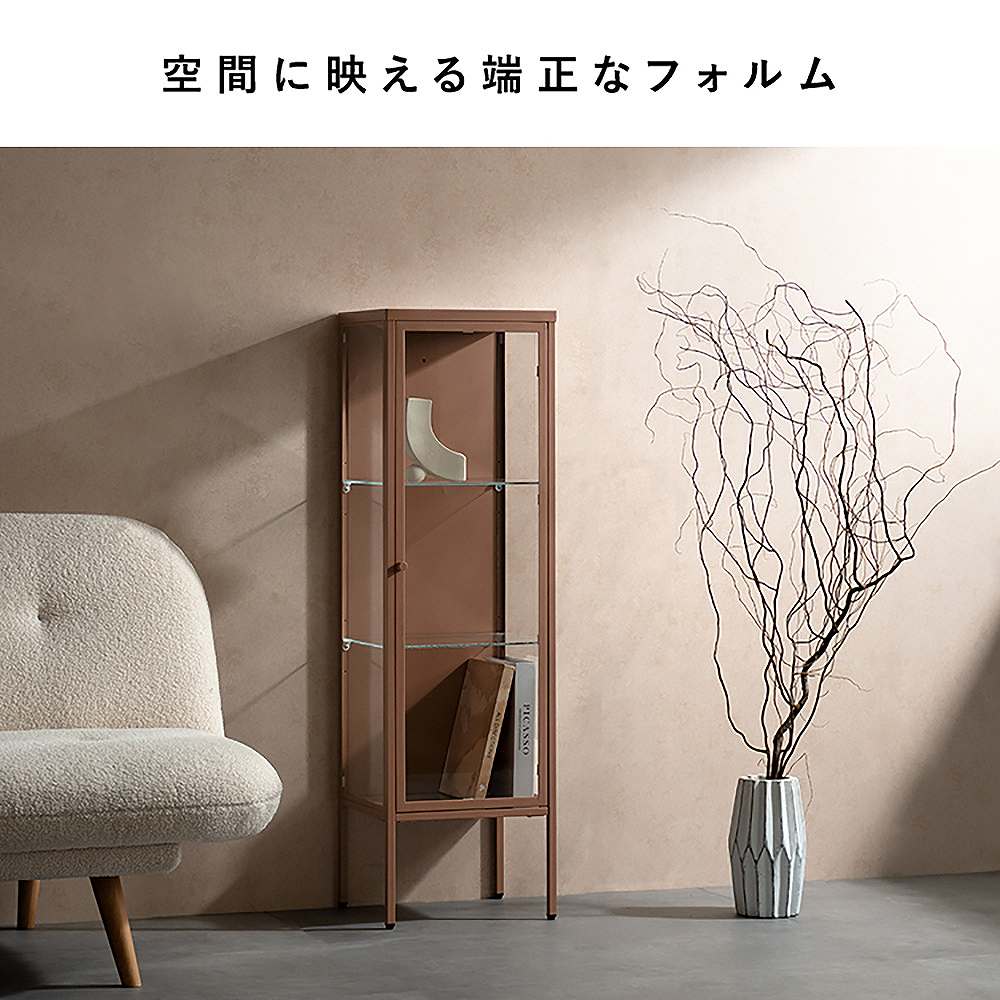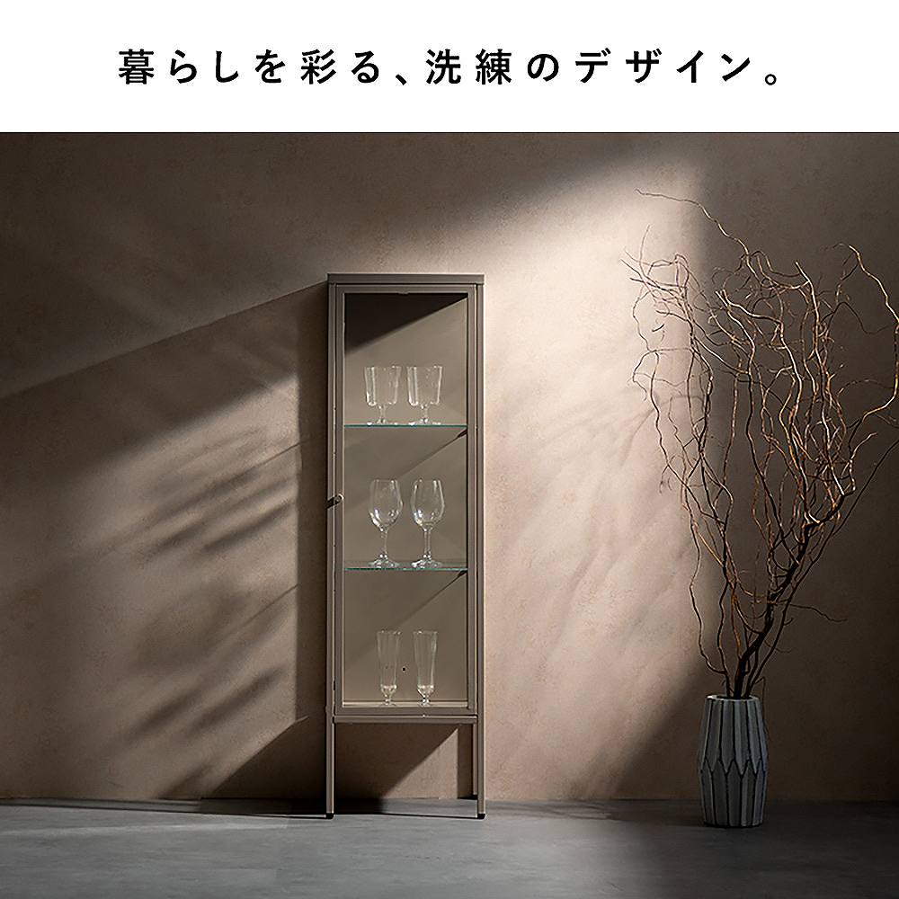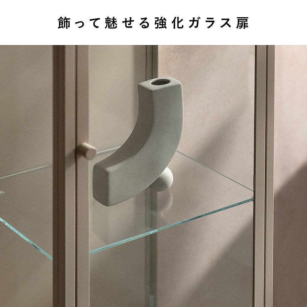 クラシカルなカラーとモダンな直線を融合させた、タイムレスな美しさ。お気に入りの小物や装飾品を美しく飾りながら保護できるディスプレイラック『Muun(ムーン)』。光を透過するガラス扉が飾る物を引き立て、軽やかな抜け感を演出します。製品重量:11.9kg