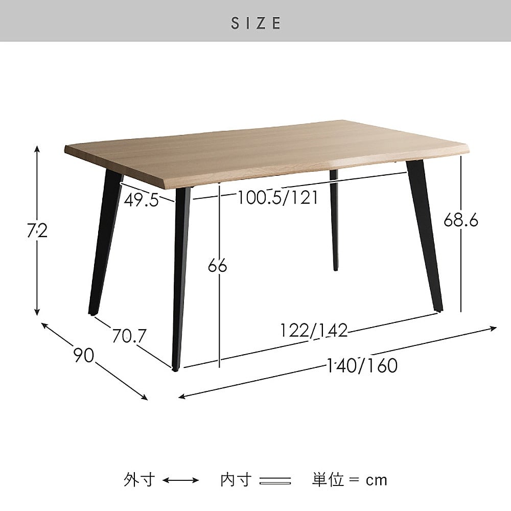 趣ある一枚板風の木製天板が特徴のダイニングテーブル『Trento(トレント) 』。ハの字に広がったブラックフレームがスタイリッシュな空間を演出します。幅140cmと160cmの2サイズ展開、カラーはナチュラルとブラウンの2カラーをご用意。ダイニングの雰囲気やお好みでお選びいただけます。製品重量:28.8kg 組立式(約15分)