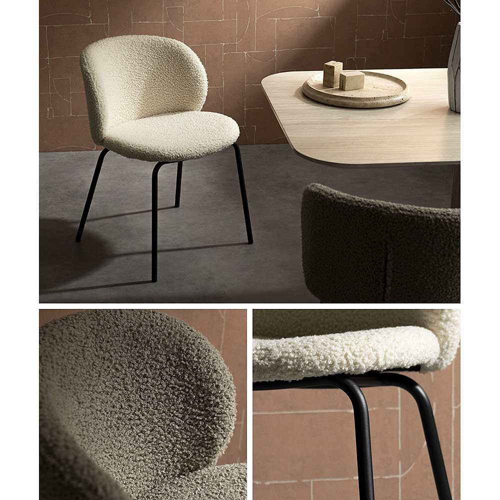 やわらかな曲線が美しい、ダイニングチェア『Kerin(カリン)』。光の角度によって表情を変えるブークレ生地が、空間に上質な印象を与えます。身体を包み込む背もたれとゆったりとした座面が、長く座っても疲れにくい、快適な座り心地を実現。毎日の食卓を、より優雅で心地よいひとときへと導きます。製品重量:5.1kg