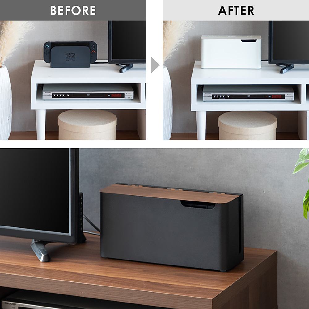 インテリアから浮いてしまうSwitch2を充電スタンドごと入れられるゲーム機ケース『TEER(ティール)』。ホコリや汚れを防ぎながらお部屋の雰囲気を損ねることなくスッキリ片付けることができます。ゲームをしたいときは、スムーズに開閉できるフタカバーからSwitch2本体やコントローラーをすぐに取り出せます。製品重量:1.35kg