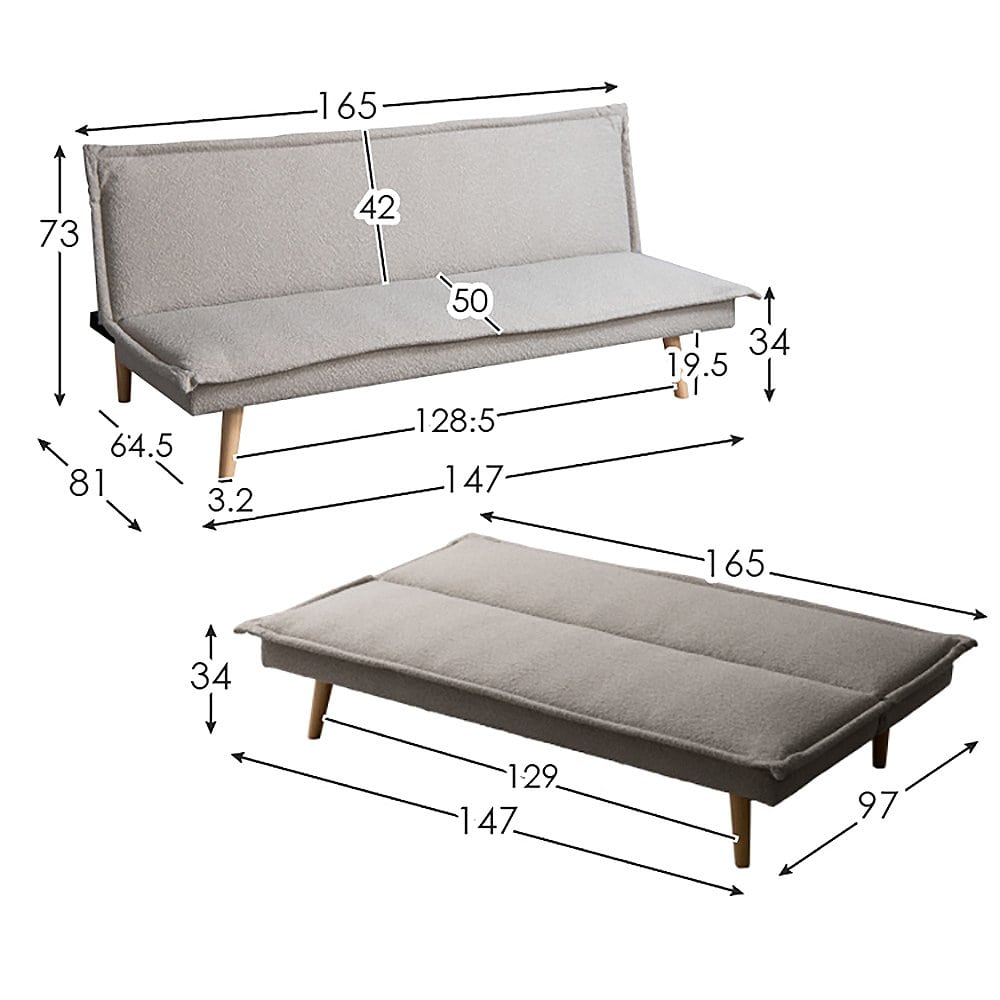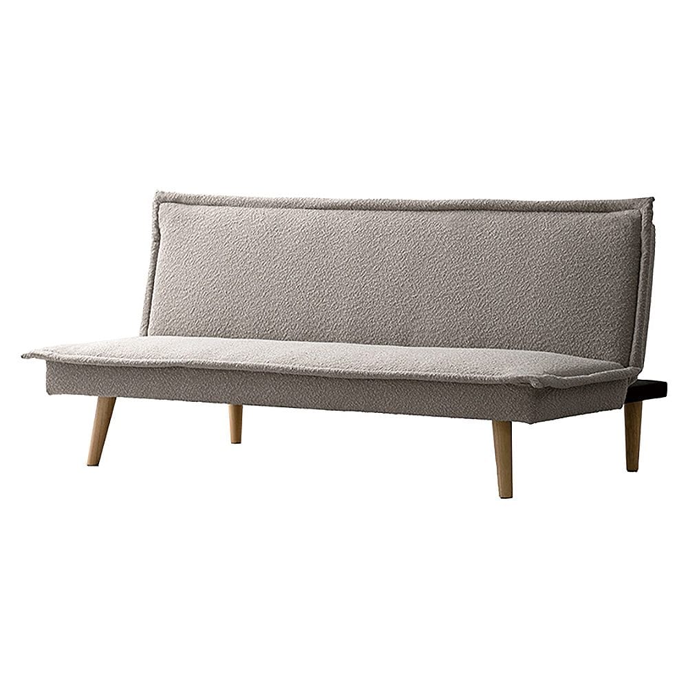ブークレの張地とフリルのようなヘムデザインが特徴の三人掛けソファベッド『Capella(カペラ)』。ゆったり座れる広々とした座面設計で座るソファは、背もたれを倒せばゆとりのあるベッドに早変わり。カラーはグレージュとダークグレーの2カラーをご用意。お好みでお選びいただけます。製品重量:18.4kg