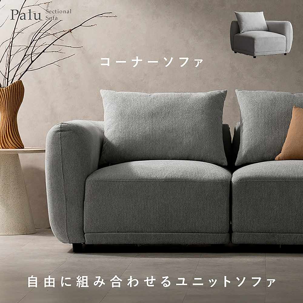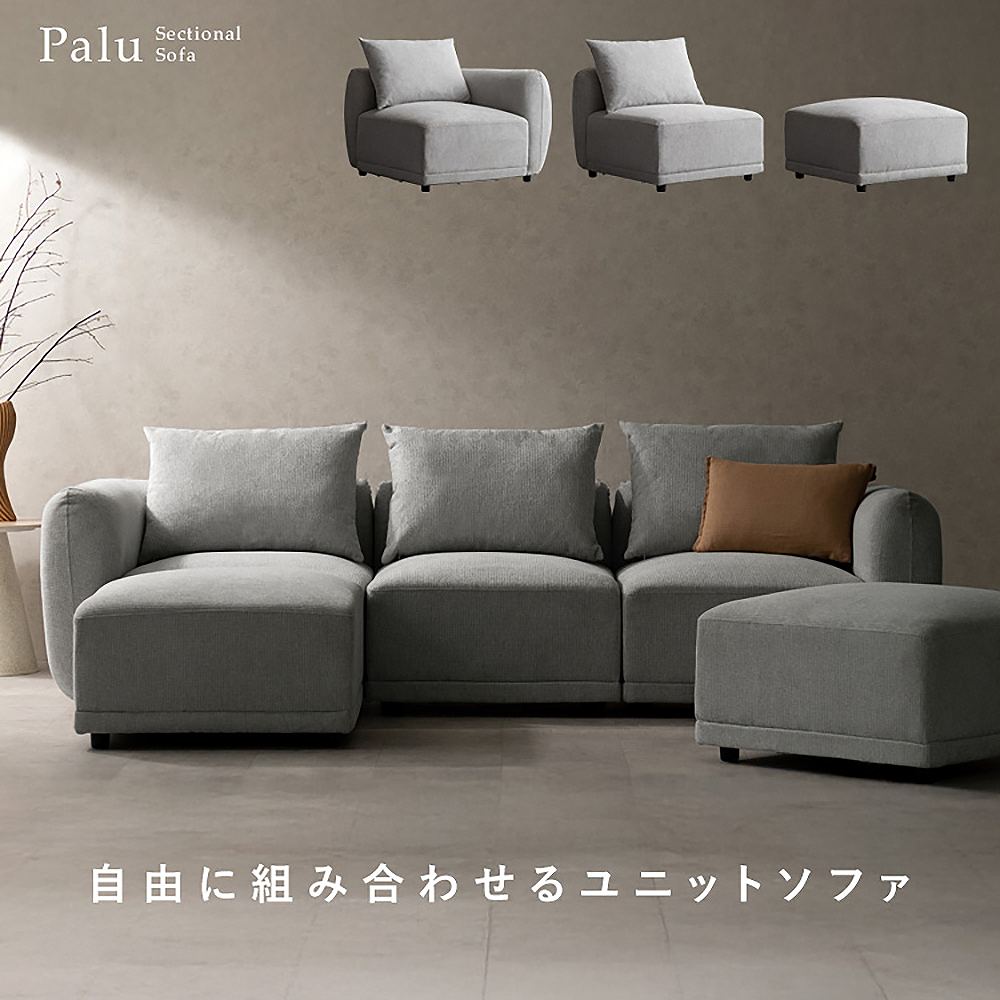 三種類のソファを組み合わせてお好みの形にできるユニットソファ『Palu(パル)』。肘掛けのあるコーナーソファ、中央に置けるアームレスソファ、オットマンから置く場所や座る人数に合わせて様々なパターンができます。座り心地の良い座面と落ち着くのあるグレーカラーの張地でリラックスタイムを快適にお過ごしいただけます。 製品重量:29kg