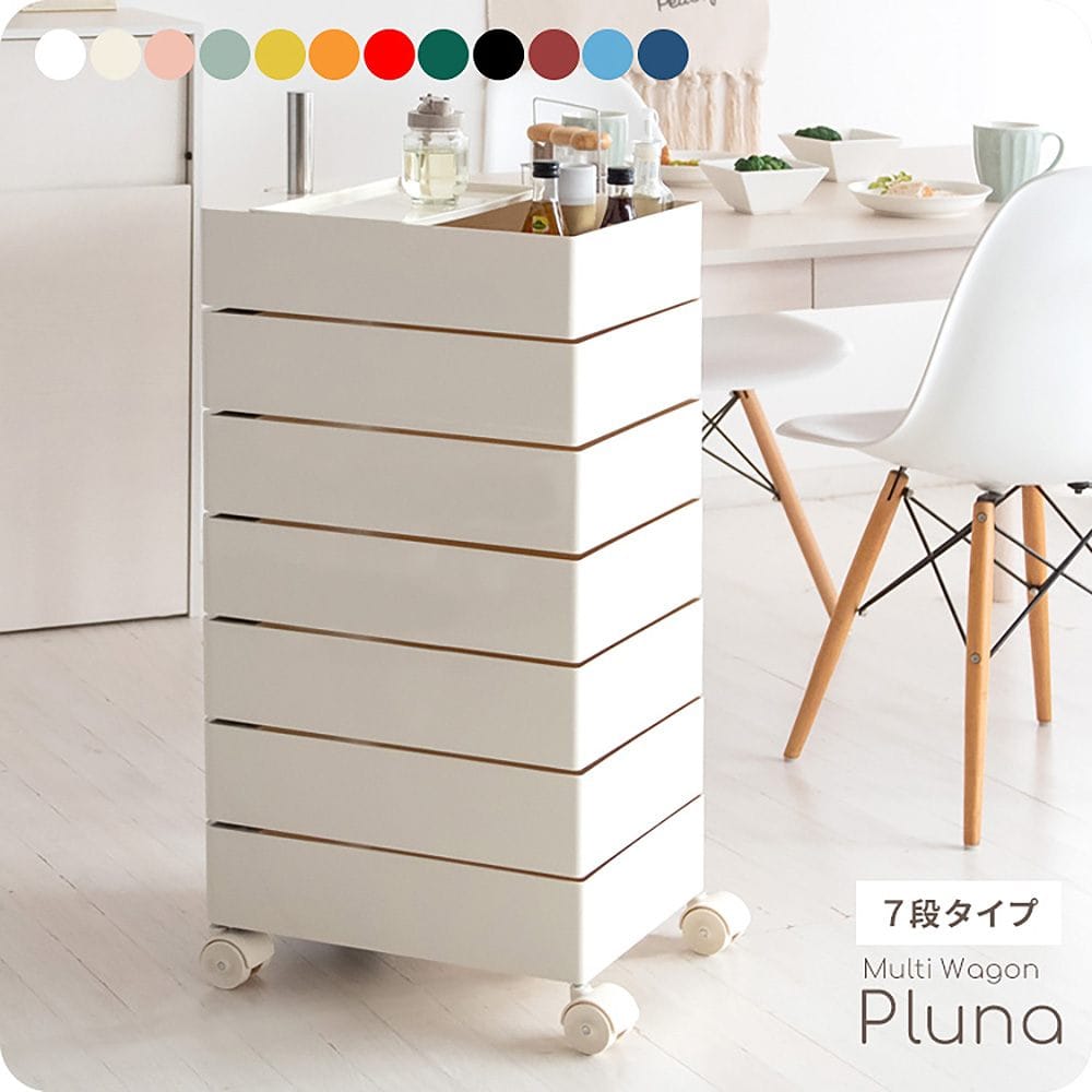 丸みのあるデザインが可愛い多段トローリーワゴン『Pluna(プルーナ)』。4輪キャスターでラクラク移動できます。棚はそれぞれ360度回転式で取り出しやすく、リビングや寝室、デスクなど色々なシーンでマルチにお使いいただけます。ベビー用品の収納にもオススメ。製品重量:12.4kg 完成品(キャスターのみ取り付け)