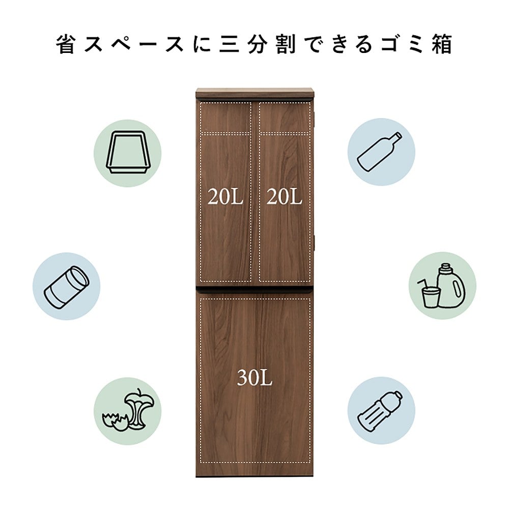 ゴミ箱に見えないスタイリッシュなデザインでお部屋に溶け込む、木製分別ダストボックス『NotT(ノット)』。ゴミ箱はペットボトルや缶が分別できる上段と、移動して生ゴミがサッと捨てられるキャスター付きの下段に分かれており、キッチンなどでのゴミの分別がラクに行えます。ホワイト、ナチュラル、ブラウンの3カラーをご用意。お好みやお部屋の雰囲気でお選びいただけます。製品重量:19kg