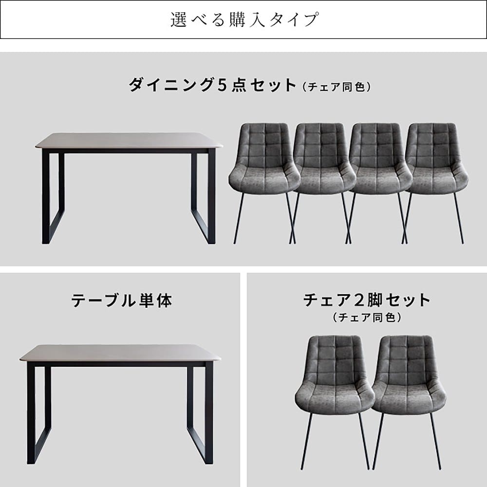 セラミック素材の大理石風天板のダイニングテーブルと、身体にフィットする形状でキルティングが施されたダイニングチェアのダイニングセット『Lement(レメント)』。 耐熱性や耐摩耗性に優れたセラミックは熱いお鍋やフライパンを直接置いたり、まな板なしで直接包丁でのカットができます。 お好みで選べるカラーはテーブルが鏡面仕上げのホワイトとグレー、マットなダークグレーの3カラー、チェアはPUレザータイプがホワイトとダークグレー、ベルベットがアイボリーとライトグレーの計4カラーをご用意。テーブルとチェア4脚の5点セット、テーブル単体、チェア2脚の販売がございます。