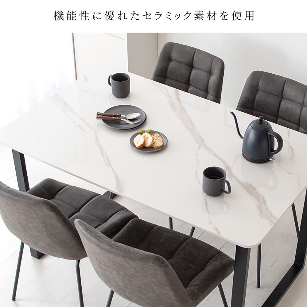 セラミック ダイニング5点セット ダイニングテーブル 4人掛けテーブル 四人 ダイニング セラミック素材 テーブル デスク 作業台 木製テーブル 食卓 長方形 大理石柄 ダイニングチェア キルティング 四人掛け 4脚セット 5点セット 宮武製作所 セラミック PUレザー スチール ホワイト ダークグレー 鏡面 マット
