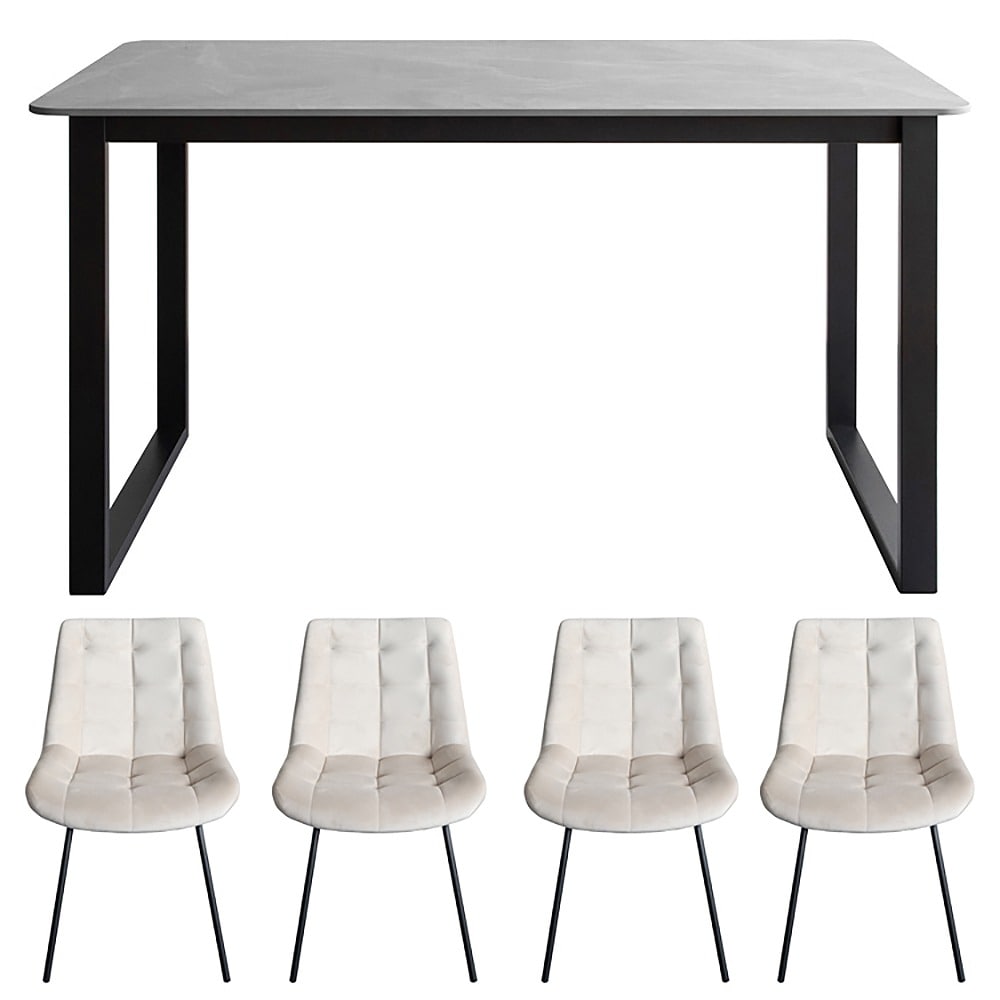 セラミック素材の大理石風天板のダイニングテーブルと、身体にフィットする形状でキルティングが施されたダイニングチェアのダイニングセット『Lement(レメント)』。 耐熱性や耐摩耗性に優れたセラミックは熱いお鍋やフライパンを直接置いたり、まな板なしで直接包丁でのカットができます。 お好みで選べるカラーはテーブルが鏡面仕上げのホワイトとグレー、マットなダークグレーの3カラー、チェアはPUレザータイプがホワイトとダークグレー、ベルベットがアイボリーとライトグレーの計4カラーをご用意。テーブルとチェア4脚の5点セット、テーブル単体、チェア2脚の販売がございます。