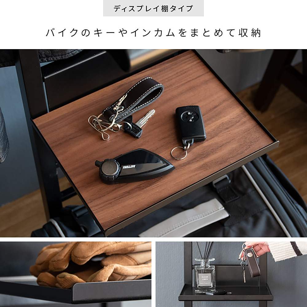 ライダーに人気のヘルメットディスプレイスタンド『GALEA(ガレア)』から追加用ディスプレイ棚が登場。ディスプレイ棚タイプとハンガーバー付きディスプレイ棚の2タイプがあります。 面倒な組み立ては不要で、スタンドに掛けるだけでキーやグローブが収納できる棚やジャケットやレインウェアを掛けるハンガーバーが追加できます。 ディスプレイ棚はホワイト、ブラック、木板付きのホワイト×ナチュラル、ブラック×ブラウンの4カラー。ハンガーバー付きはホワイトとブラックの2カラーをご用意。お好みでお選びいただけます。