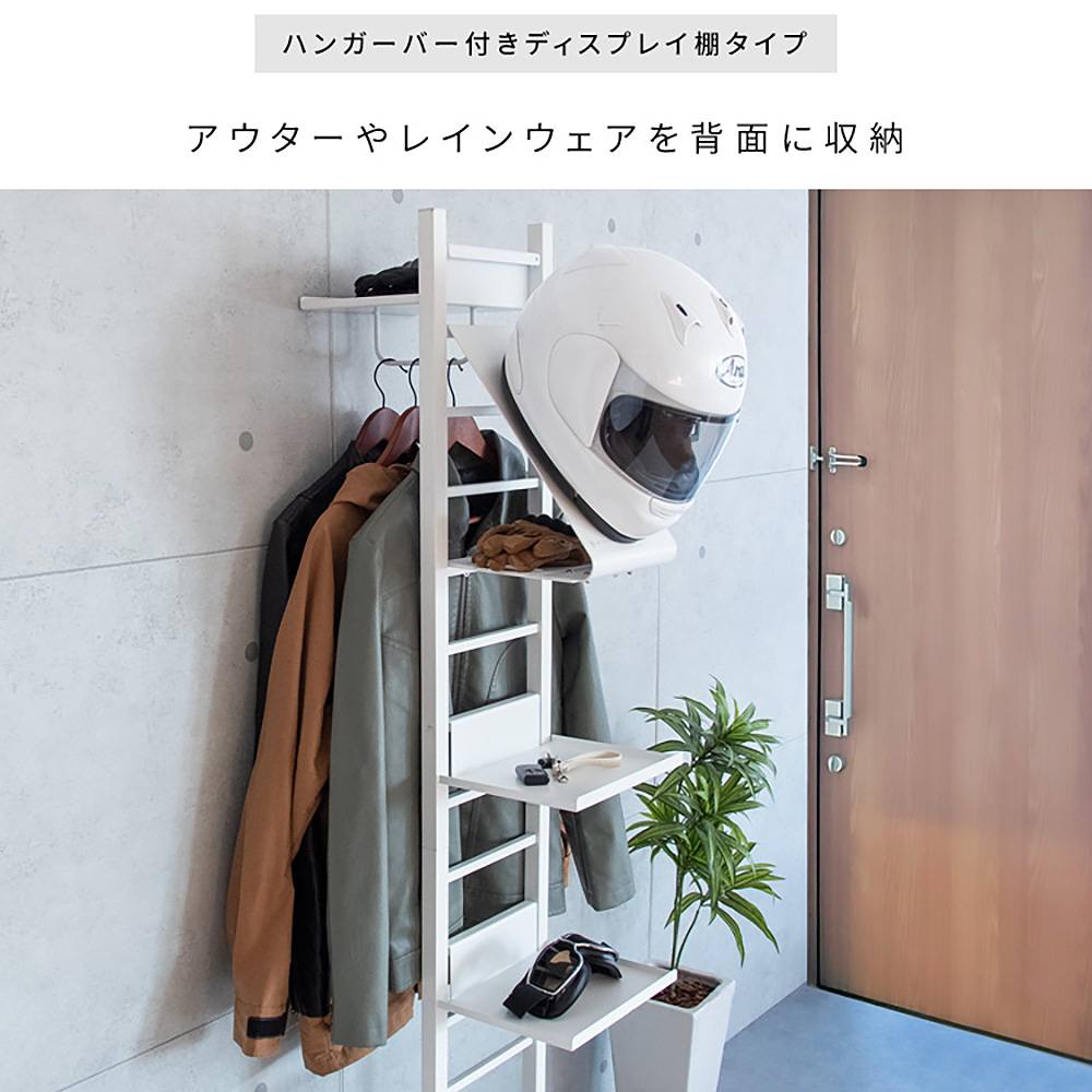 ディスプレイ棚 ハンガーバー付きディスプレイ棚 ヘルメットスタンド ヘルメットツリー バイク ヘルメット 自転車 バイカー ロードバイク ヘルメット 玄関収納 スチールラック スタンド ハンガーラック