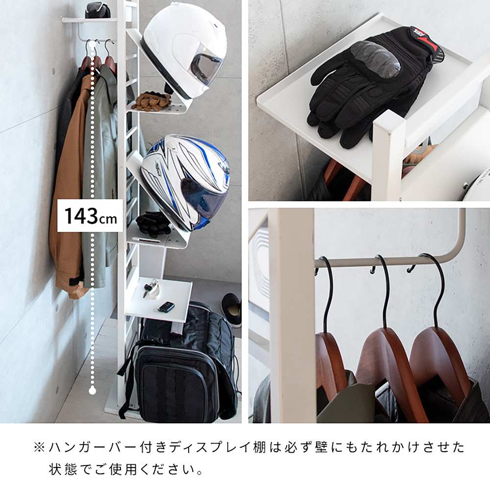 ディスプレイ棚 ハンガーバー付きディスプレイ棚 ヘルメットスタンド ヘルメットツリー バイク ヘルメット 自転車 バイカー ロードバイク ヘルメット 玄関収納 スチールラック スタンド ハンガーラック