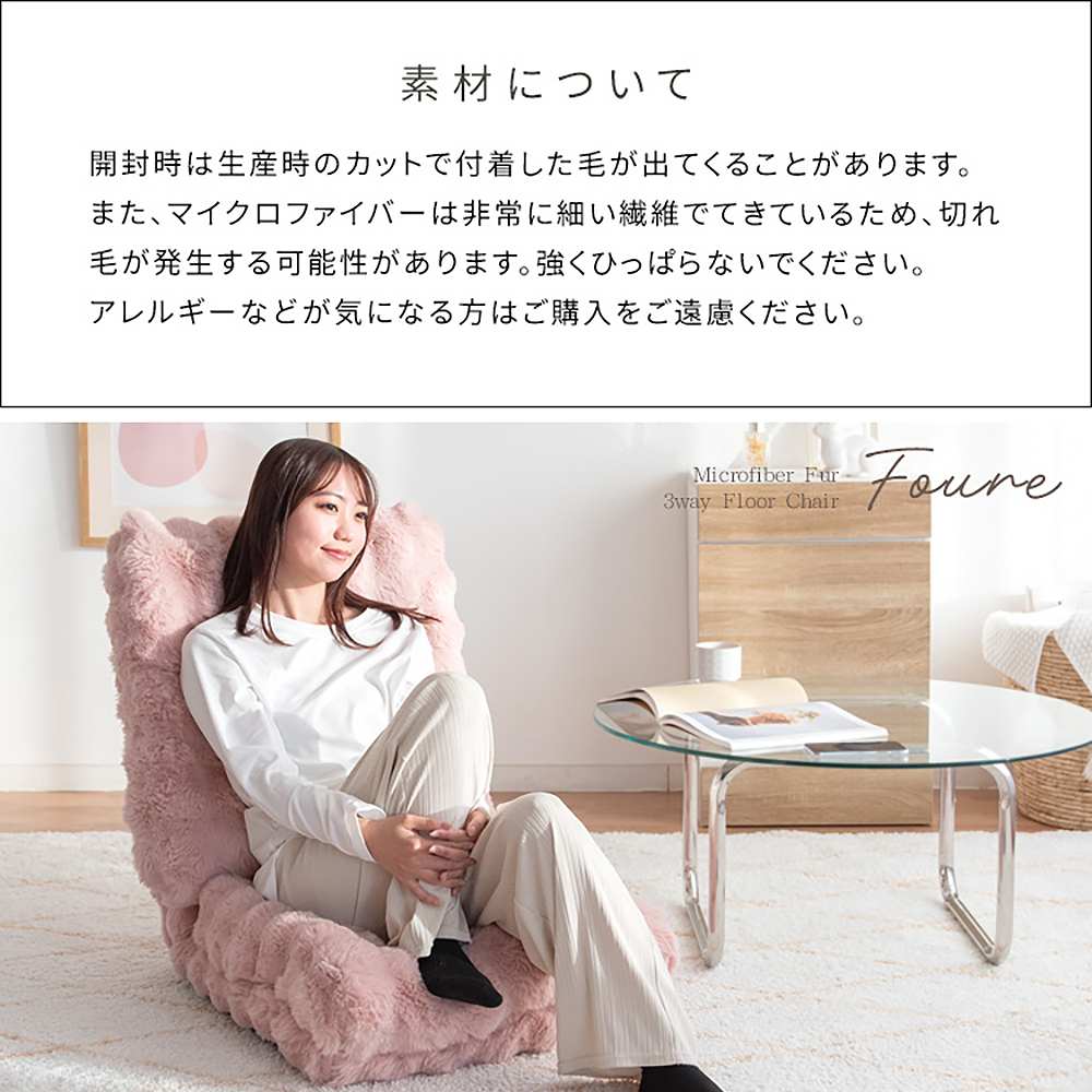 座椅子・カウチソファ・ベッドの3wayでお使いいただける便利なふわとろ座椅子『Foure(フール)』。とろけるような肌触りが気持ち良いマイクロファイバー生地とふかふかクッションがあなたを癒してくれます。 14段階リクライニングでお好みの角度に調整可能。カラーはホワイト、ベージュ、ピンク、グレーの4種類。お部屋の雰囲気やお好みでお選びいただけます。