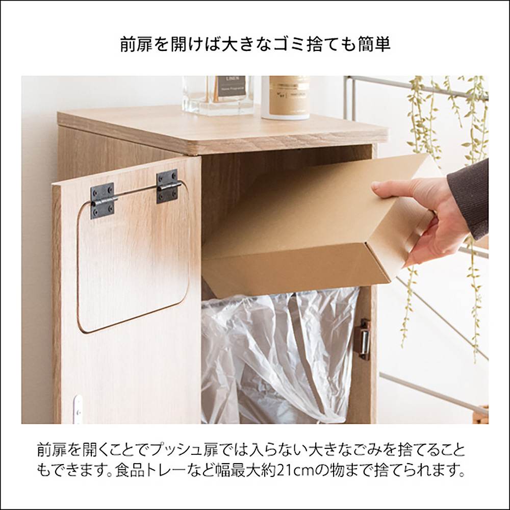 プッシュ式 ダストボックス 木製 キッチンペール ごみ箱 フタ付き ゴミ箱 おしゃれ 分別 ふた付き スリム ペダル キッチン カウンター 省スペース 扉付き ウッド ブラウン ナチュラル