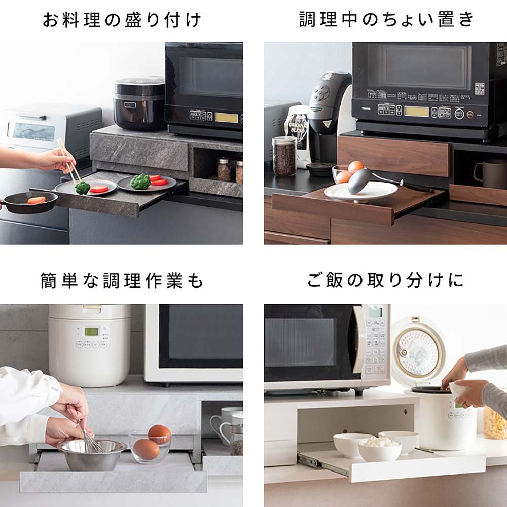 レンジ下トレー オーブンレンジ置き レンジラック キッチンキャビネット キッチンラック レンジボードスライドトレー スライドテーブル キッチン収納 引き出し 台所収納 炊飯器ラック 作業スペース キッチンテーブル 完成品 組立不要
