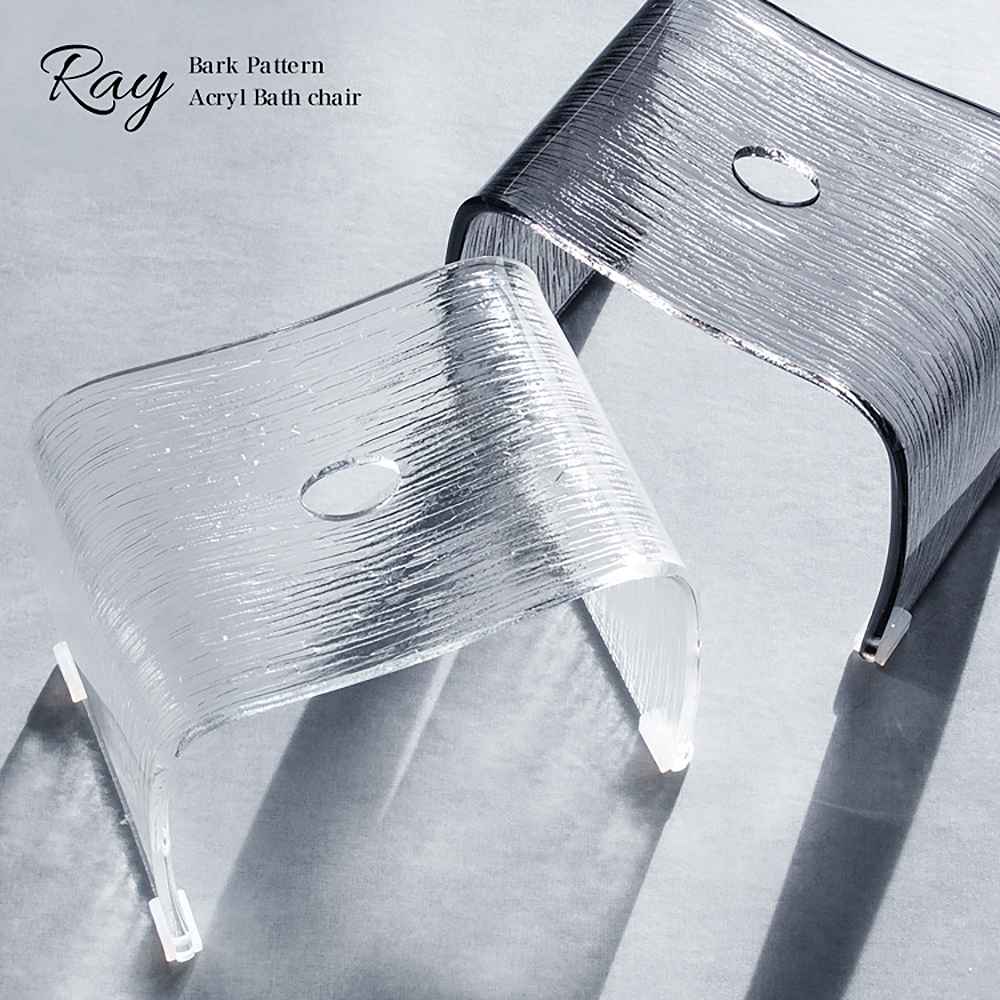 個性的で美しい、スタイリッシュな樹皮柄のアクリルバスチェア『Ray(レイ)』。 樹皮を模した凹凸デザインのバスチェアは、丈夫で使い勝手の良いアクリル製。透明感のある艶やかなチェアが高級感のある浴室を演出します。 カラーはクリアとグレーの2カラーをご用意。お部屋の雰囲気やお好みでお選びください。
