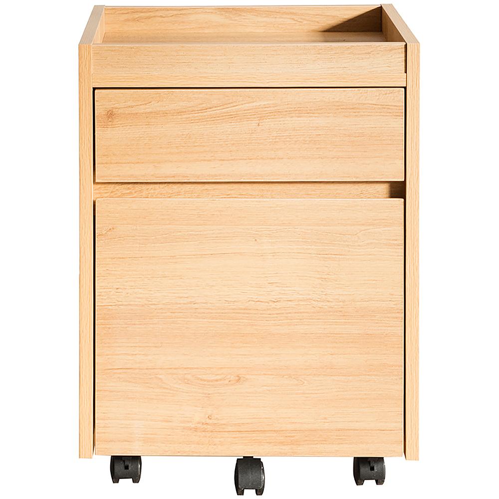 色々収納できる引き出しが二杯付いたシンプルで美しい木目調のサイドチェスト『Lezele(ルゼル)』。デスク周りはもちろんリビングや寝室などお家の色々な場所でマルチに活躍します。 深さの異なる二つの引き出しはA4ファイルも収納できるサイズ。天板は囲いがあり書類やマグカップの落下を防げます。キャスター付きで移動もラクラク。 カラーはナチュラルとブラウンの2カラーからお好みでお選びいただけます。同シリーズのサイドラックや、同じ木目調のコの字型デスク『Visage Neo(ビサージュ ネオ)』と合わせるとより統一感があり便利にお使いいただけます。