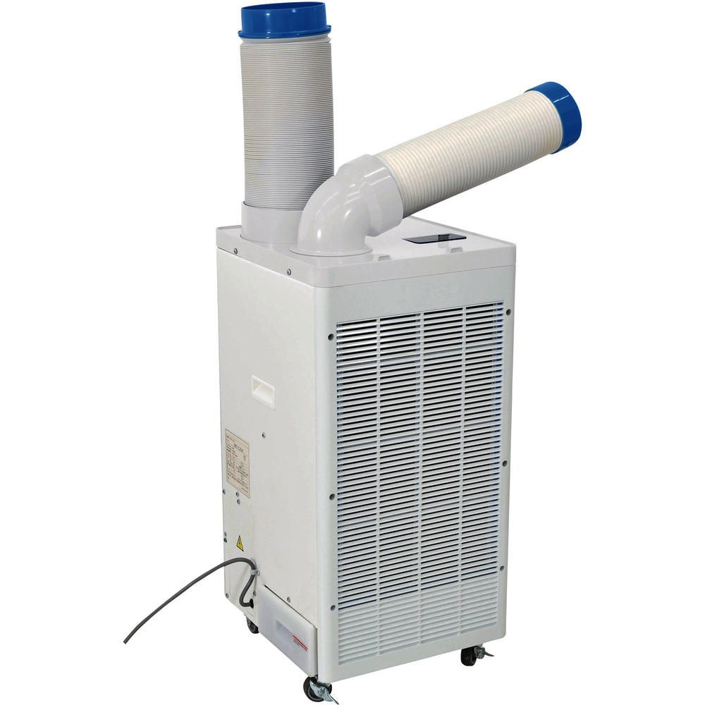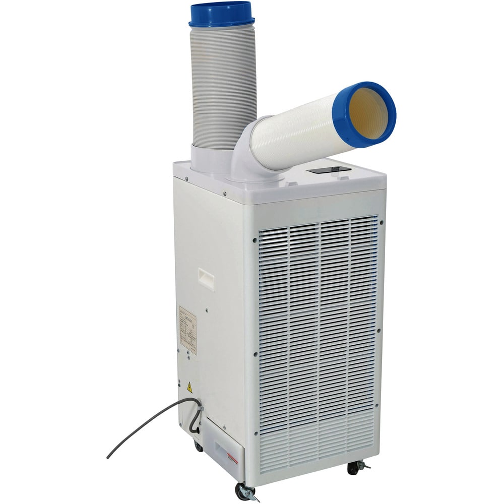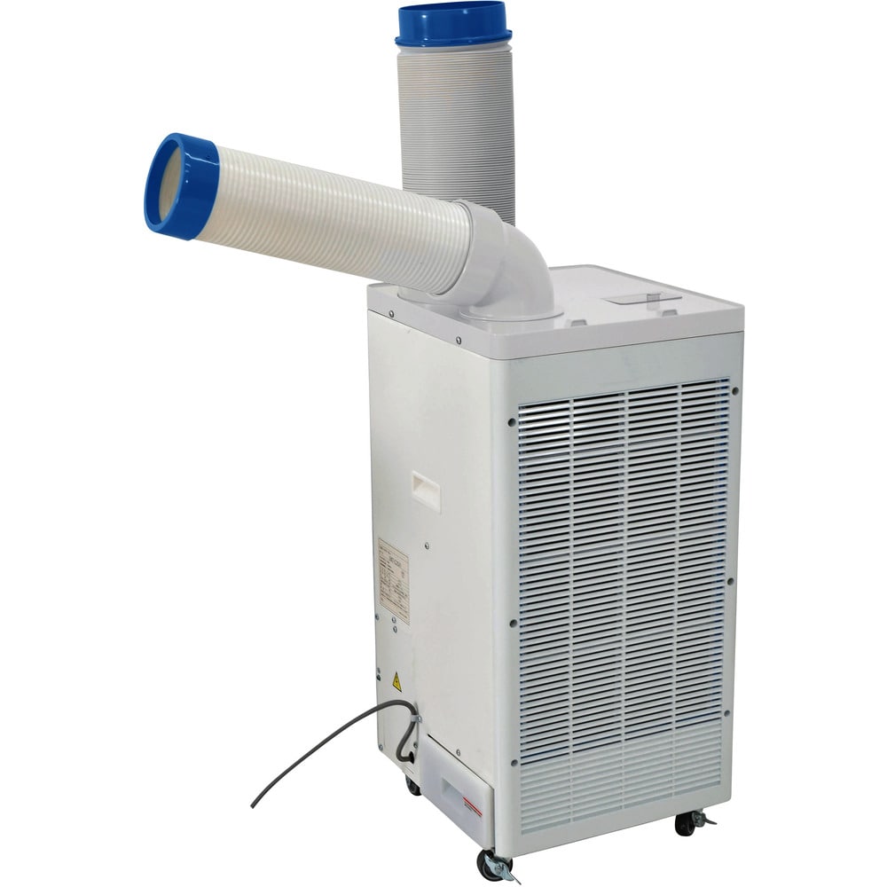 ●100V専用フロアタイプスポットクーラーです。●キャスター付きでどこでも楽々移動ができます。●電源(V):100●冷房能力(kW)(50/60Hz):2.2/2.5●消費電力(kW)(50/60Hz):0.797/1.04●口数:1●首振り有無:左右210度(手動)●タンク容量(L):4●本体寸法(mm)幅:401●本体寸法(mm)奥行:430●本体寸法(mm)高さ:803●電源コード長さ(m):2●騒音値(dB)50/60Hz:62//62●冷風温度差(度)(50/60Hz):13●標準消費電力料金(50Hz):24.7円/h●標準消費電力料金(60Hz):32.2円/h●色:白●定格電流(A):50Hz送風:弱/1.91A、強/1.97A、冷風:弱/9.1A、強/9.4A60Hz送風:弱/2.33A、強/2.48A、冷風:弱/11.0A、強/11.3A●起動電流(A):50Hz/47A 60Hz/51A●風量調節2段階(送風/弱・強、冷風/弱・強)●ドレン方式:タンク(4L)+ホース(1.5m)●圧縮機:全密閉ロータリー 質量37.4kg