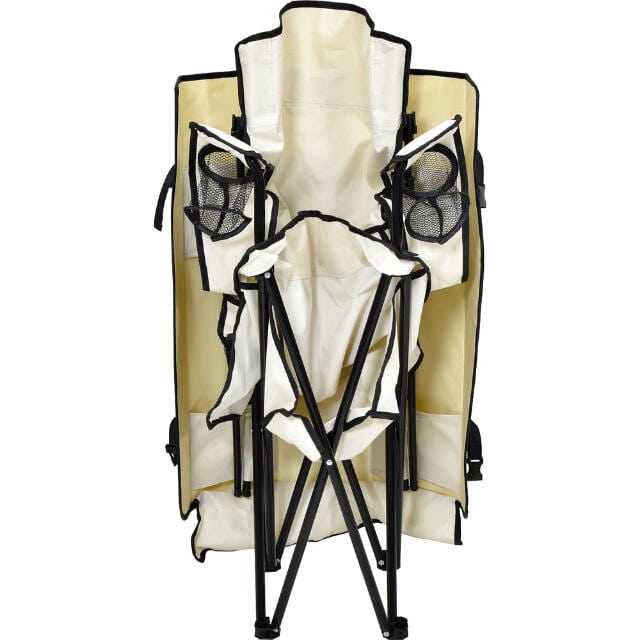 ●サンシェード付きの折りたたみイスです。●付属の「西日ガード」を前後左右に取り付けることができます。●足元にシートポケット、ひじ掛けにはカップホルダー、右側面にサイドポケット付きです。●座幅(mm):520●座奥行(mm):520●座面高さ(mm):480●張地:サンド●色:サンド●幅(mm):820●奥行(mm):770●高さ(mm):1330●材質(生地):600Dポリエステルオックスフォード生地●材質(フレーム):/スチールパイプ●連続耐荷重:120kg 質量4.7kg