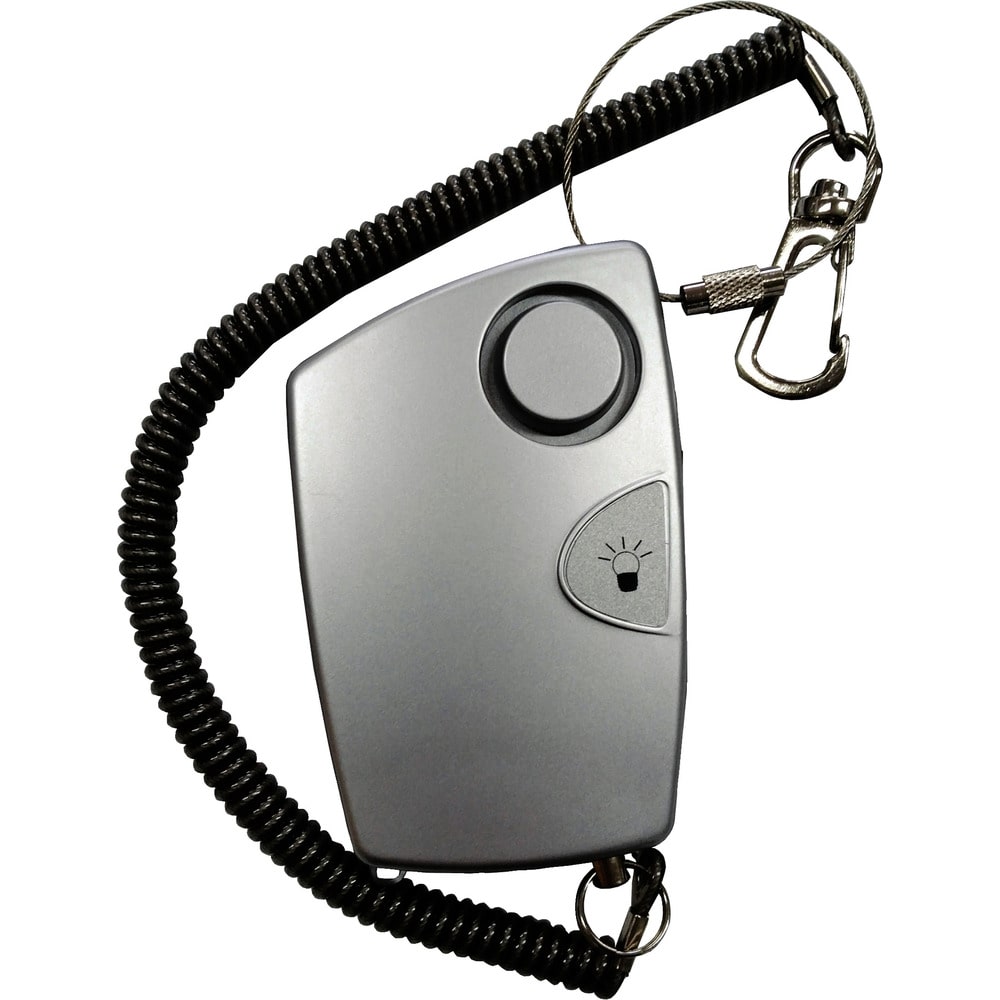 ●本品を取り付けた荷物が引ったくられるとコイルロープが伸びきった時点で、ピンが抜けて大音量(97db)のブザー音とLEDライトが点滅し周囲に知らせます。●ライトスイッチを押すと白色LEDライトが点滅します。●ブザー音が鳴っている間はLEDライトが点滅するので、暗がりでも非常事態を確認できます。●特殊形状記憶素材のコイルロープを使用しているので伸び弛みが無いので長持ちします。●色:シルバー●幅(mm):105●奥行(mm):15●高さ(mm):170●本体寸法(mm)幅:50●本体寸法(mm)長さ:83●音量(dB):97(測定距離1m)●全国防犯協会連合会推奨 第17H211※号 ●防水試験:IPX5適合●コイルの重さ:約13g●コイル部分の伸縮:160cm●音量:97dB(測定距離:1m)●連続吹鳴時間:約120分(温度:20度)●電池:マンガン電池2本入 質量61g