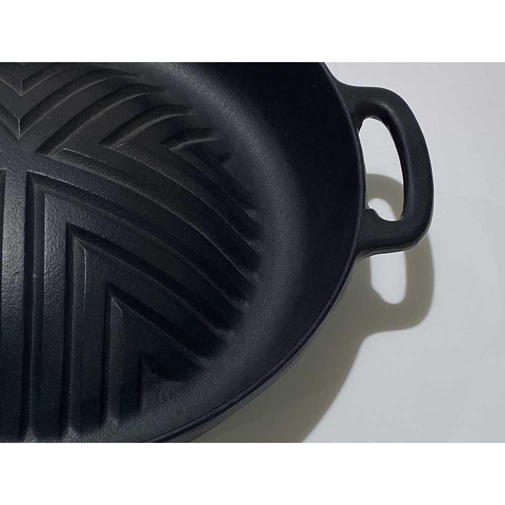 鋳肌が美しい岩鋳のキッチンウェア。お肉の余分な脂を落としてくれます。野菜も香ばしく焼けます。