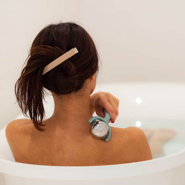 1日立ち仕事を頑張った脚に。 ももや腰を大きく円を描くようにケア。広い部位にちょうどいいラージサイズ。