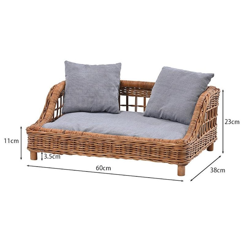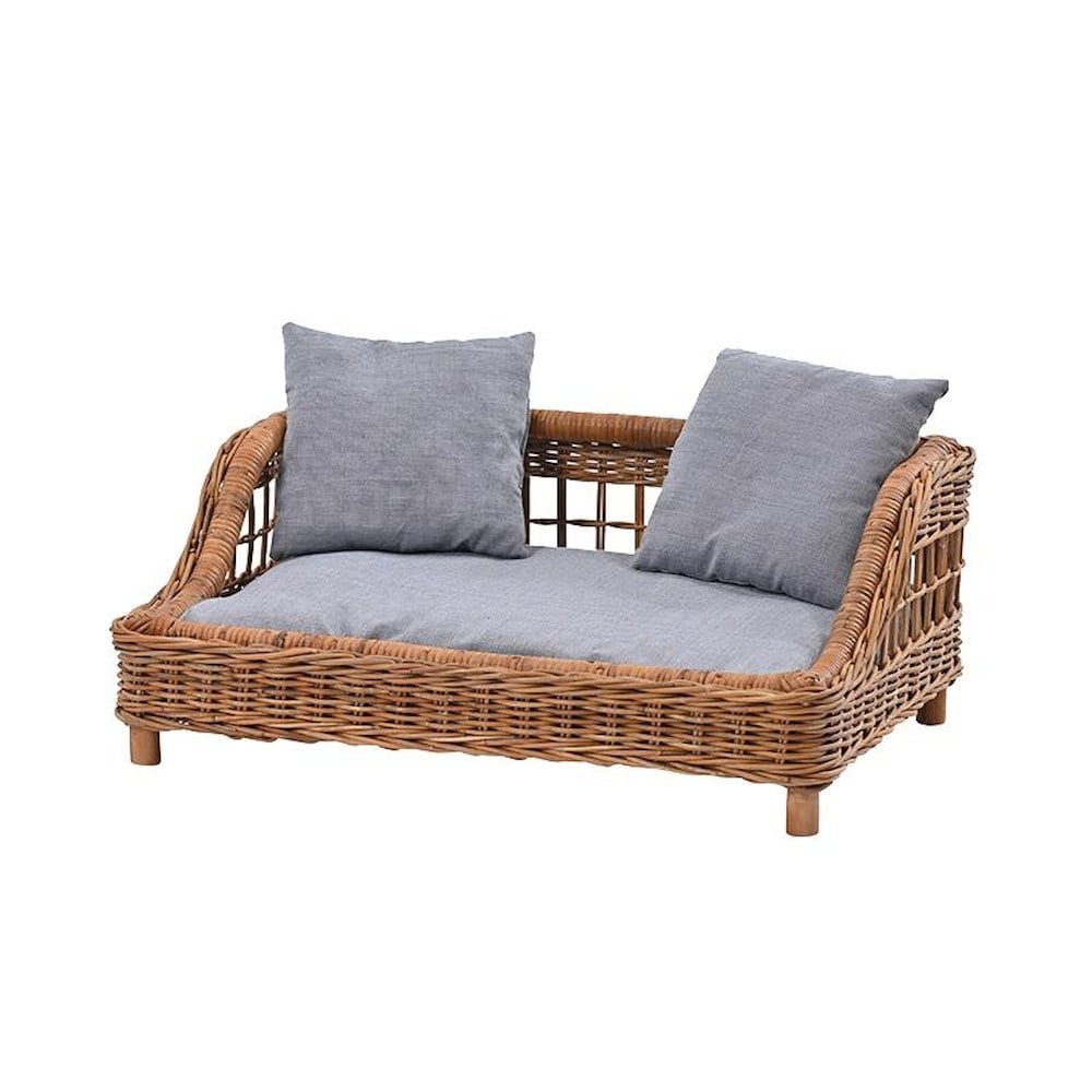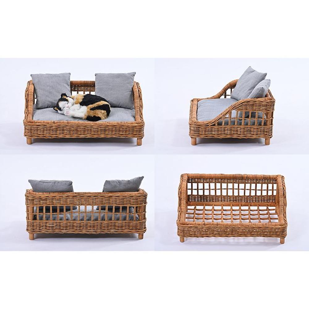 ラタンを使用した自然の風合いを味わえるペットベッド。 完成品※自然素材を使用しハンドメイドで仕上げている為、大きさ、重量、色味には若干の個体差がございます。※自然な風合いや素材の温かみを味わっていただけるように、材料に皮付きの籐(とう)をそのまま使用しています。そのため、材料1本1本の色の違いや、黒ずみ、斑点などがある場合がございます。また、籐(とう)の表面のところどころに傷のようにホーロー質がはがれた部分があります。これはトゲのある」節」を取りのぞいた削り跡で必ずあります。これらは不良ではなく、天然素材特有の風合いによるものです。予めご了承ください。ラタン製なので通気性が良く、また軽くて持ち運びが楽々。ナチュラルテイストの優しさと温かみ溢れる風合い。ひとつひとつ丁寧に手編みによってつくられています。