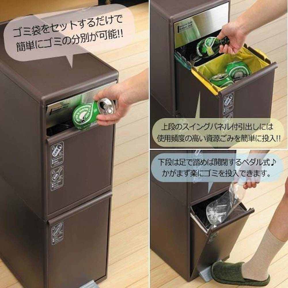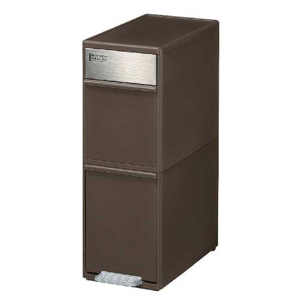 分別スイングステーション ワイド2段 BWP-11BS DBrダークブラウン 資源ごみを楽に分別できるペダル式ゴミ箱。