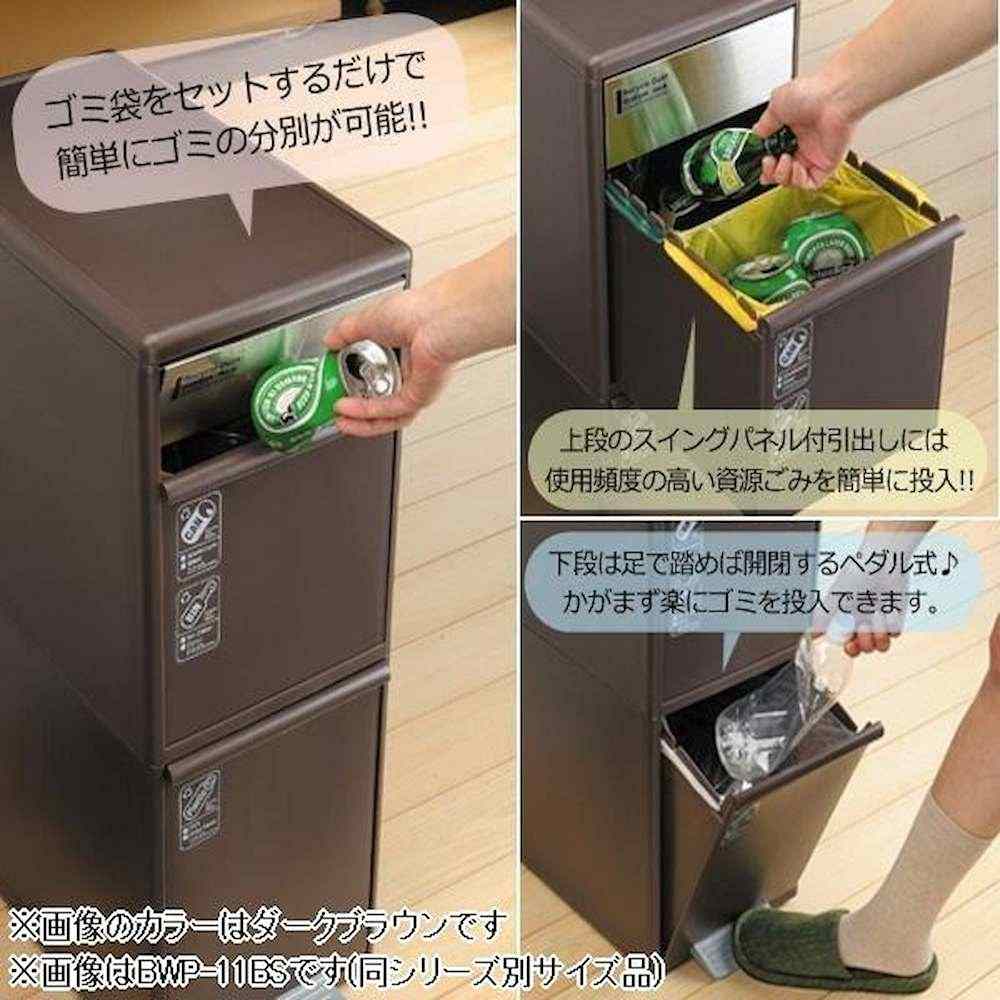 資源ごみを楽に分別できるペダル式ゴミ箱。