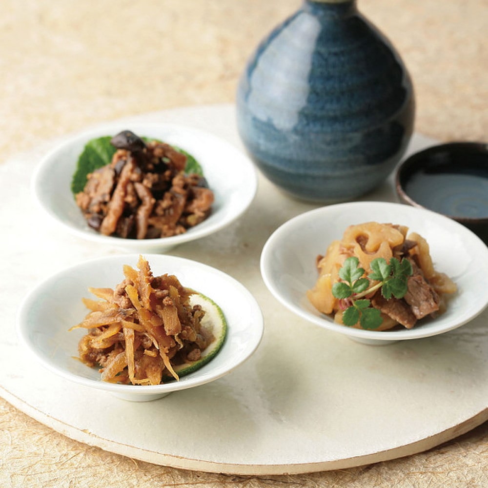 ●牛肉すきやき50g・牛肉やわらか煮50g・牛肉こんぶ50g・牛肉ごぼう50g・牛肉まいたけ50g・牛肉れんこん50g・牛肉くきわかめ50g×各1