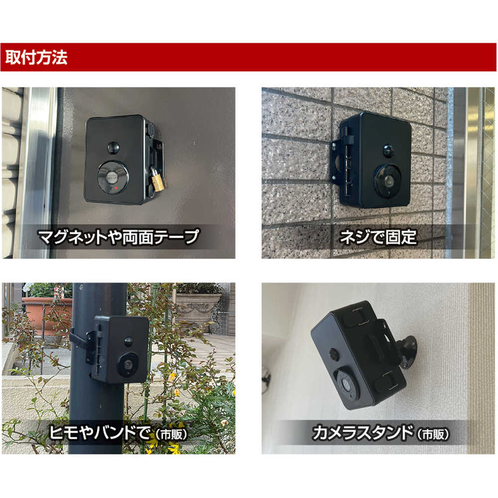 ●侵入者やストーカーを感知するとその場でmicroSDカードに自動録画します。● 液晶画面付きなので、パソコン無しでも録画した画像を確認できます。●電池式だからどこにでも設置できます。●最大100万画素の録画が可能です。●夜間でも赤外線LEDで録画します。●動画モード・静止画モードを選べます。●連続撮影もできます。(タイマー設定時間内)●撮った画像はパソコンでも確認できます。●屋外でも使用可能です。(IP66)●幅(mm):113●奥行(mm):57●高さ(mm):115●最大画素数(万):100●電源:単3形アルカリ電池×6本(別売)/ 専用ACアダプター 0505 / X0505B (別売)●画質:HD/VGA/QVGA(選択式)●給電方式:専用ACアダプターX0505 / X0505B(別売使用可)●視野角(°):水平100°/垂直60°●接続端子:USB Type-C●本体サイズ:W11.3×H11.5×D5.7cm●素材・材質:ABS樹脂●電源:単3形アルカリ電池6本(別売)、又は、ACアダプター X0505/X0505B(別売) 質量257g