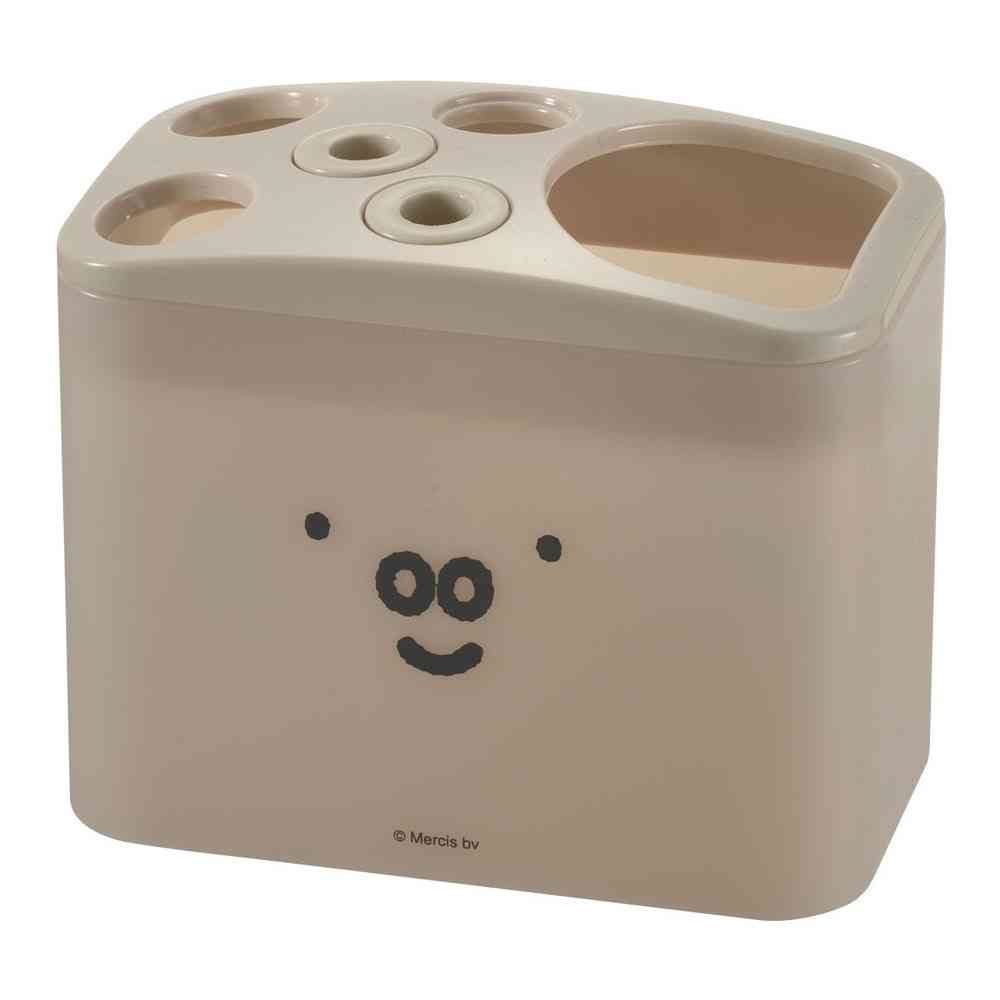 ディック・ブルーナのデザインで可愛く癒されながら、ボトルやディスペンサーを壁収納に簡単チェンジ 歯ブラシ用の穴が5つ、歯磨き用の穴が1つありご家族でご使用いただけます。 穴の幅を狭める専用パーツが付属しており、歯間ブラシも収納できます。 側面にディック・ブルーナのイラストが描かれた可愛らしいデザイン。 上部は丸みを帯びたデザインです。 下部は水がたまりにくくなっています。 ●付属品:歯間ブラシ対応パーツ×2個
