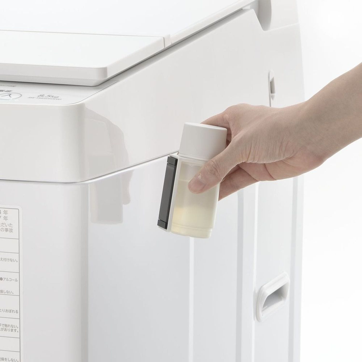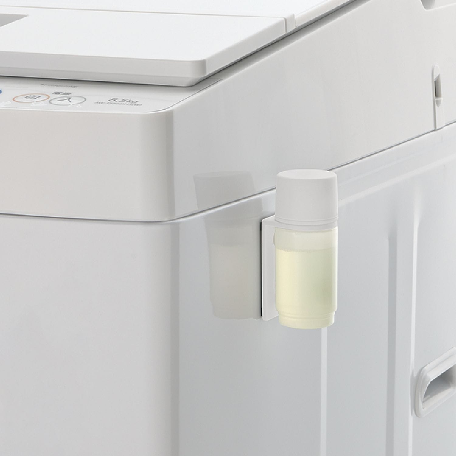 浮かせて、収納。浮かせて収納、すぐに部分洗い部分洗い用の液体洗剤容器です。マグネットで洗濯機などに取り付けられます。液体洗剤を入れて、衣類をたたき洗いできます。ほこりやゴミの付着を防ぐキャップ付きです。