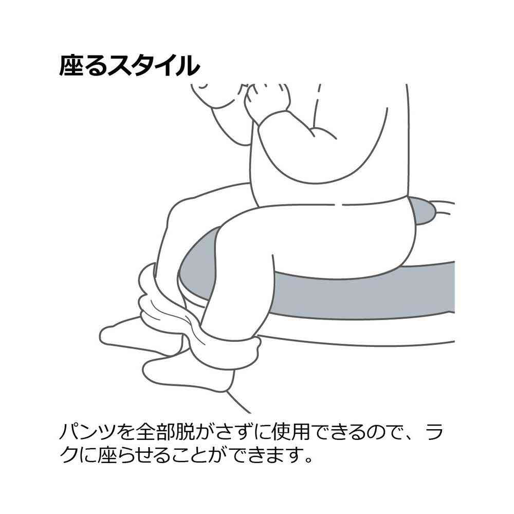 おしりにやさしいやわらか素材。 おしりが痛くなりにくい補助便座です。 ポンとおくだけ、大人用便座の穴にはめ込み、手前に寄せるだけで簡単に使用できます。 便座の後側が繋がっていない、おしりが拭きやすいU型です。 おしっこの飛び散りを防ぐ、おしっこガード付きです。 シンプル構造で丸洗いできるので、いつでも衛生的です。 パンツを全部脱がさずに座るスタイルで使用できるので、ラクに座らせることができます。