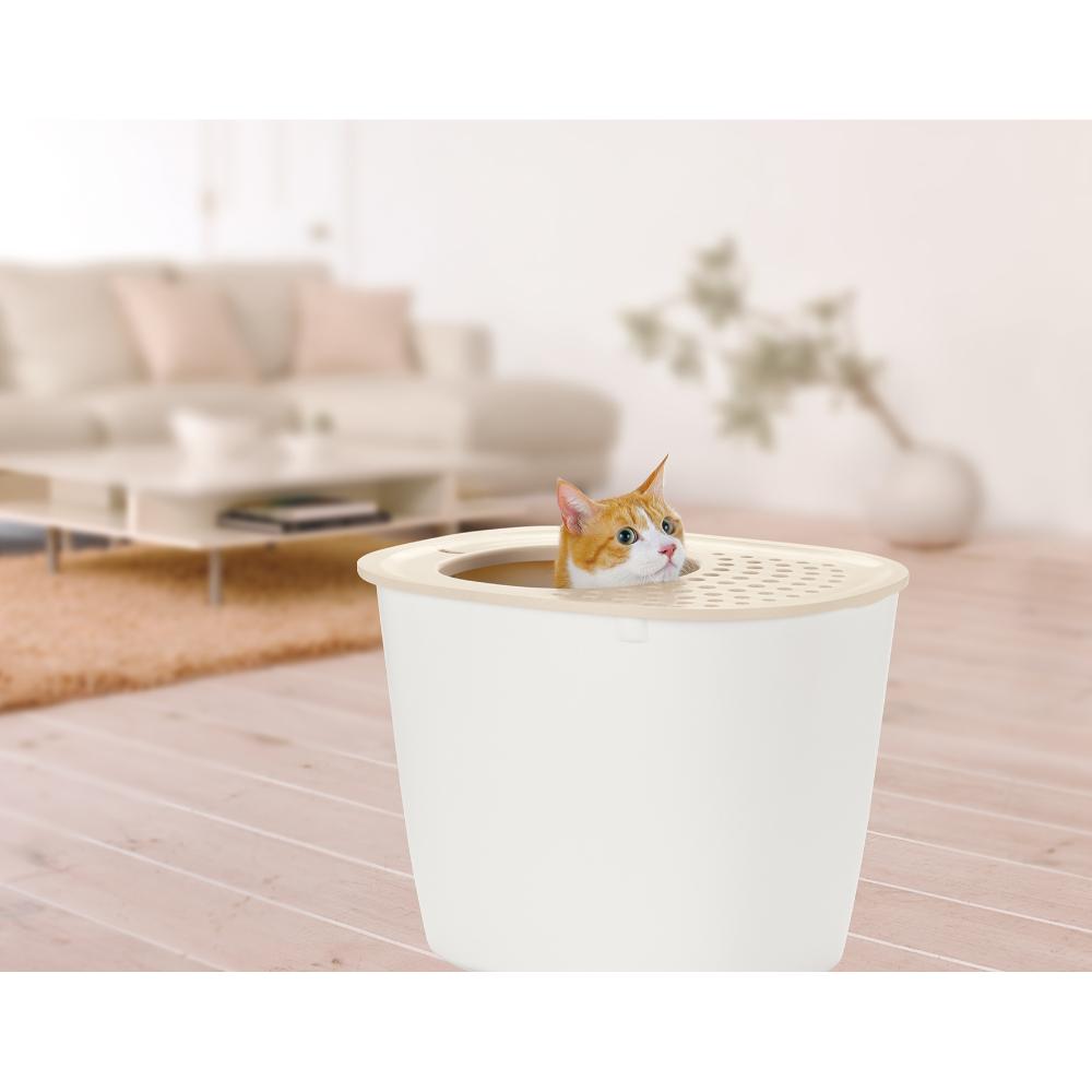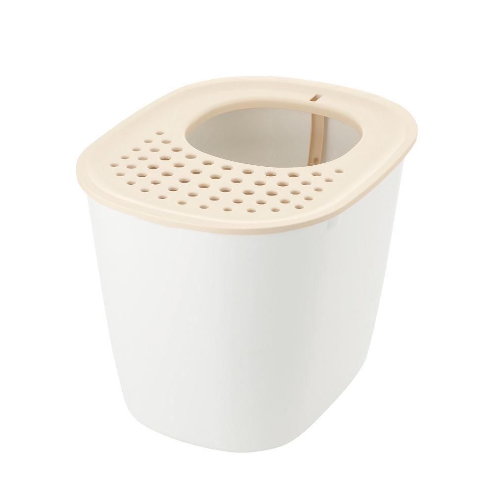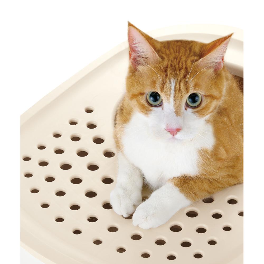 インテリアに馴染むカラーで猫と過ごすおしゃれ空間を演出! ■猫砂の飛び散りガード:上下左右が囲まれているので、猫砂をかいても外に飛び散りません。 ■メッシュで砂落とし:肉球に付いた砂もしっかり落とせるので、猫砂の外への飛び散りを軽減します。 ■フードらくらく開閉:片手で開けられるので、サッとお手入れができます。 ■スコップ付き:フード内側のフックに掛けて、収納できます。フードを閉めた状態でも、スコップを掛けることができます。 ■お手入れらくらく:プラスチック製なので、水洗いできてお手入れ簡単です。 ・適応体重:6kg