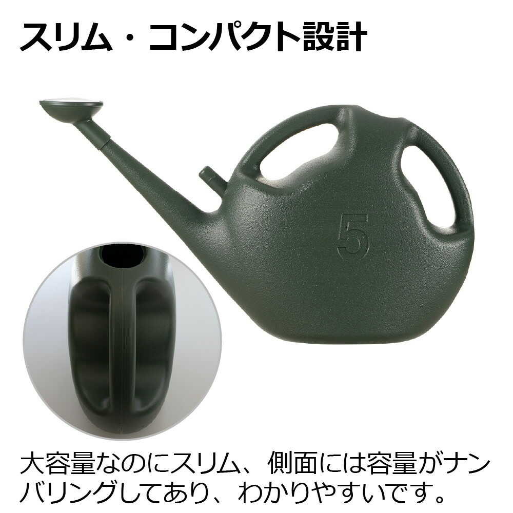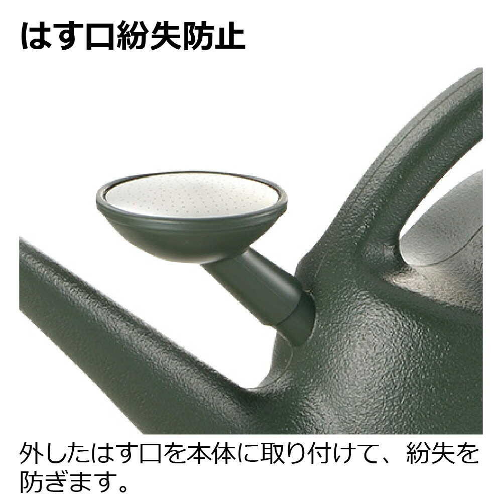 置いてかわいい、使って快適。大容量でスリムなじょうろです。 スリム・コンパクト設計で、側面には容量がナンバリングしてあり、わかりやすいです。 細かく揃ったシャワー(水粒)が、やわらかく出るステンレス製のはす口です。 はす口を外して、水さしとしても使用できます。 ノズル先端は、斜めカットで注ぎやすいです。 外したはす口を本体に取り付けて、紛失を防ぎます。 アール形状のハンドルは、重心バランスと水やりのしやすさを考え、大容量でも負担が少ない形状です。 こぼれにくいように注水口を最小限にしました。 斜め形状で水が注ぎやすいです。