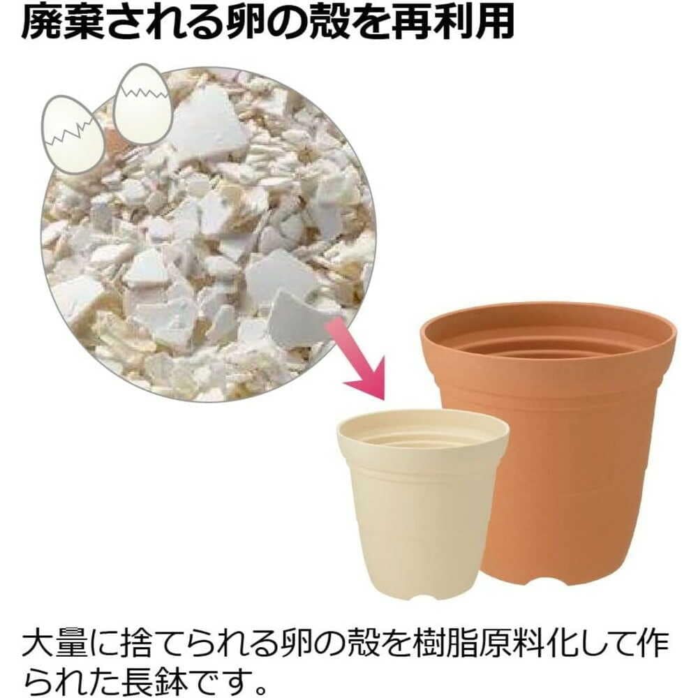 卵の殻から生まれたアップサイクルポット。 大量に捨てられる卵の殻を再利用した長鉢です。 深さがあるので、背丈のある植物に適しています。 大量に捨てられ廃棄される卵の殻を再利用し、樹脂原料化して作られた鉢です。