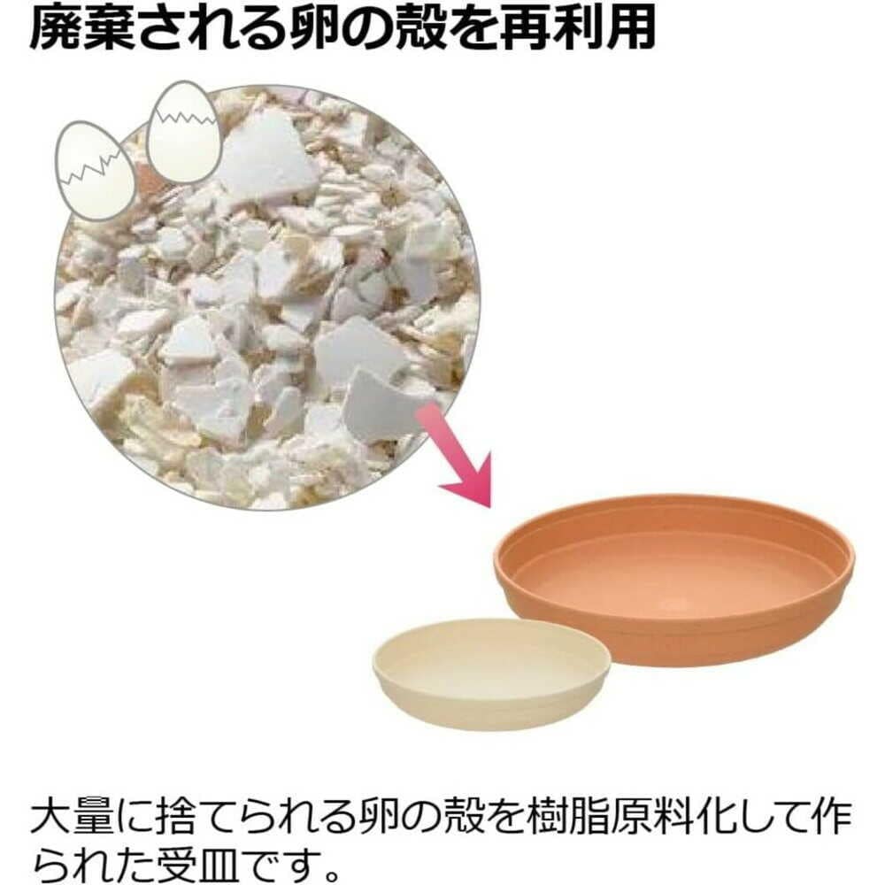 卵の殻から生まれたアップサイクルプレート。 大量に捨てられる卵の殻を再利用した受皿です。 ひよっこ ポット、ハイポットとセットで使用できます。 大量に捨てられ廃棄される卵の殻を再利用し、樹脂原料化して作られた鉢です