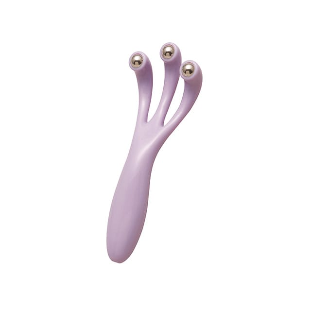 ●サロンでフェイスマッサージするエステシャンの3本の指(中指、人差し指、薬指を)をベースにしたデザインで、センターの長い中指部分のローラーは、他のローラーより少し角度を大きくしています。 頬等に沿わせ転がした時に、長い部分が先に当たってスムーズにマッサージできない事が無いよう、計算された機能的デザイン。 ●ステンレス球の大きさは、フィット感の良いΦ9.525mmを3個使用 ●ステンレス球を使用しており、お風呂での使用も可能