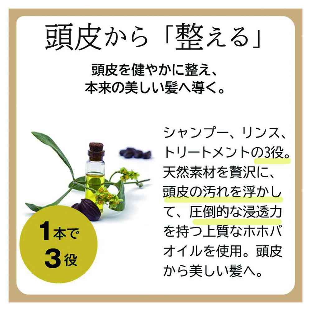 ・ハーブと天然成分の力で頭皮の健康を守る、ノンシリコンのスキャルプトリートメントシャンプー。 ・シャンプー、トリートメント、リンス3つの働きを持ち、1本だけのシンプルなお手入れで髪本来の美しさを引き出します。 <こんな方にオススメ> ・最近、頭皮が変わってきたような気がする(ニオイ、ベタつき、乾燥、かゆみ、フケなど) ・皮膚が弱く、肌荒れを起こしやすい ・ハリ、コシが欲しい ・適度なボリュームが欲しい