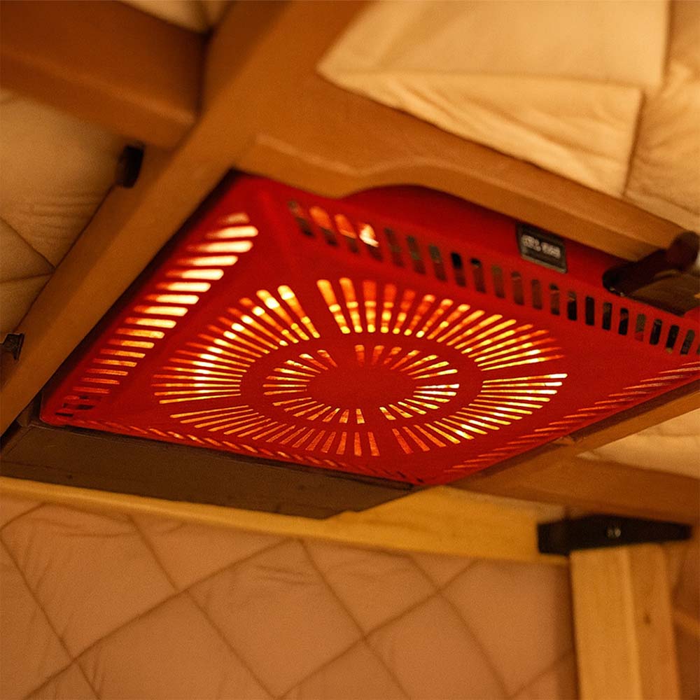 「メトロレトロ」は、昭和の家庭に広く普及していた「赤く光るこたつ」を、現代の技術で蘇らせた昭和100年記念モデルです。 「赤色植毛ガード」と「赤ハロゲンランプ」を搭載。 温度ヒューズ/電流ヒューズ/5時間自動オフタイマーを標準搭載、PSE準拠で安心。 仕様 ■ヒーター 型番:MHU-501EC(K) 電源:交流 100 V 50-60 Hz 消費電力:最大 500 W 最小 90 W ヒーター:U字形ハロゲンヒーター ファン・モーター:プロペラファン・誘導電動機 温度制御:感熱抵抗素子による位相制御 安全装置:(本体)温度ヒューズ/(電源コード)電流ヒューズ 標準寸法:幅29cm×奥行き29 cm×高さ4.1cm 標準重量:約1.5 kg コード:ICリモコン(KEC43B) 丸打ちコードタイプ3 m 1時間あたりの標準消費電力量:(強)約250Wh/(弱)約145Wh 1時間あたりの電気代:(強)約7.8円/(弱)約4.5円 製造国:日本製 ※保証期間はお買い上げ日から1年間です