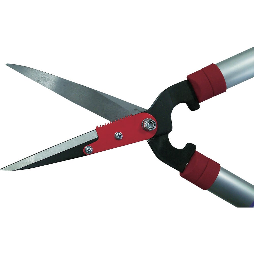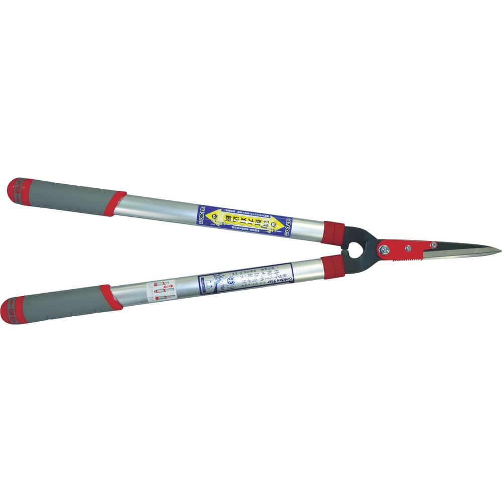 ●受け刃のエッジが枝をしっかり掴むので、通常の1/2の力で切断できる刈込ハサミです。●柄が伸縮するので高い所の枝も楽々切断できます。●柄が楕円形なので握りやすく、刈り込む際に力を加えやすくなっています。●柄の長さはグリップ部分ではなく、グリップ先端のストッパーで調節します。●作業中に伸縮がゆるむ事なく安全です。●柄の伸縮は段階式ではなくお好みの長さで固定できます。●刃は2度焼入れを行う「複式焼入」により滑らかな切れ味が持続します。●切断能力(mm):6~12●刃長(mm):170●全長(mm):700~1000●柄部材質:アルミ、エラストマ樹脂 質量950g