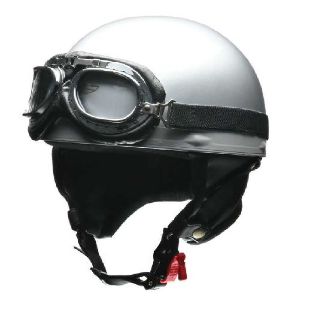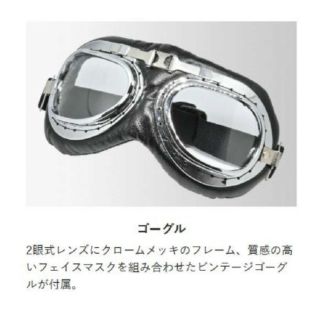 正統派ビンテージモデル(LLサイズ) クラシカルな2眼式レンズのゴーグルを装着したイヤーカバー付ハーフヘルメット。 ビンテージやレトロな雰囲気のバイクによく似合います。 規格:125cc以下用