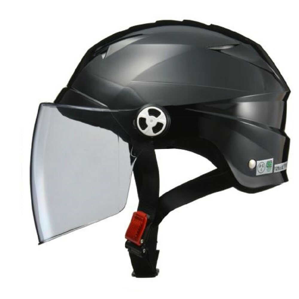 タウンユースに適したシールド付き軽量ハーフモデル(LLサイズ) 誰もが目を引くシャープなシェルデザイン。 軽量・コンパクトなシェルに走行風を効率よくヘルメット内部へ導くダイレクトインテークをフロントの両サイドに装備。 規格:125cc以下用