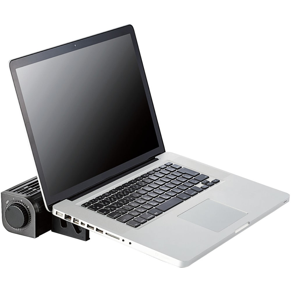 ●パソコンやUSBハブのUSBポートに接続するだけで使用できるUSBクーラーです。●縦置きで省スペースなタワー扇風機として、横置きでノートパソコンやタブレットの冷却台として使用可能です。●ノートパソコン・タブレット冷却時用スタンドを搭載し、サイズに合わせてスタンドの幅(約195~65mm)を調整可能です。●(※約300(幅)×11(奥行)×200(高さ)mmまでのタブレットを設置可能です。)●タイプ:多機能タイプ●色:ブラック●高さ(mm):296●幅(mm):67●奥行(mm):65●品名:USB扇風機●対応機種:USBインターフェイスを装備したパソコン●風力切替機能:3段階(弱・中・強)●定格電圧:DC5V●消費電流:400mA●ファンの回転直径:約33mm●ケーブル長:約1.5m※コネクタを除く●カラー:ブラック●保証期間:6カ月 質量450g