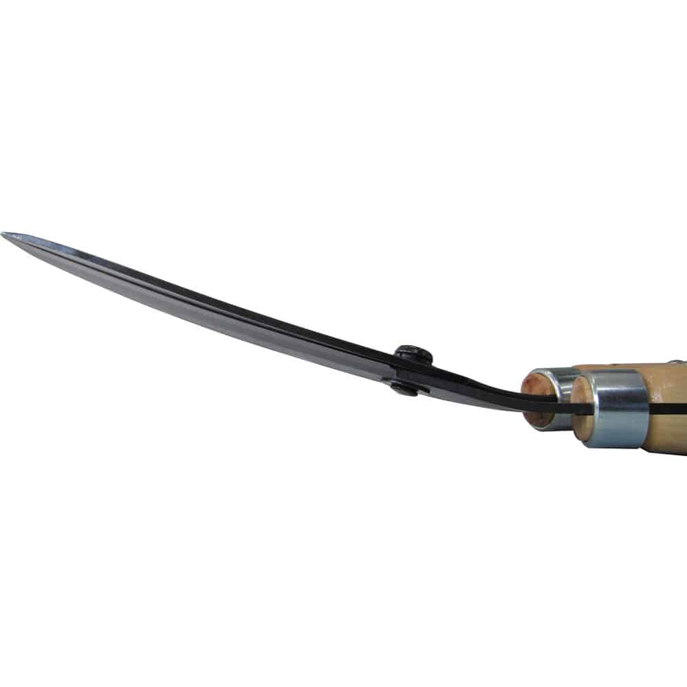 ●火造り鍛造による鍛えられた刃物です。●日立安来鋼を貼り合せてあり、刃研ぎが楽にできます。●地面に刺さらないように、反り刃になっています。●切断能力(mm):8●刃長(mm):165●全長(mm):655●柄部材質:椎 質量715g