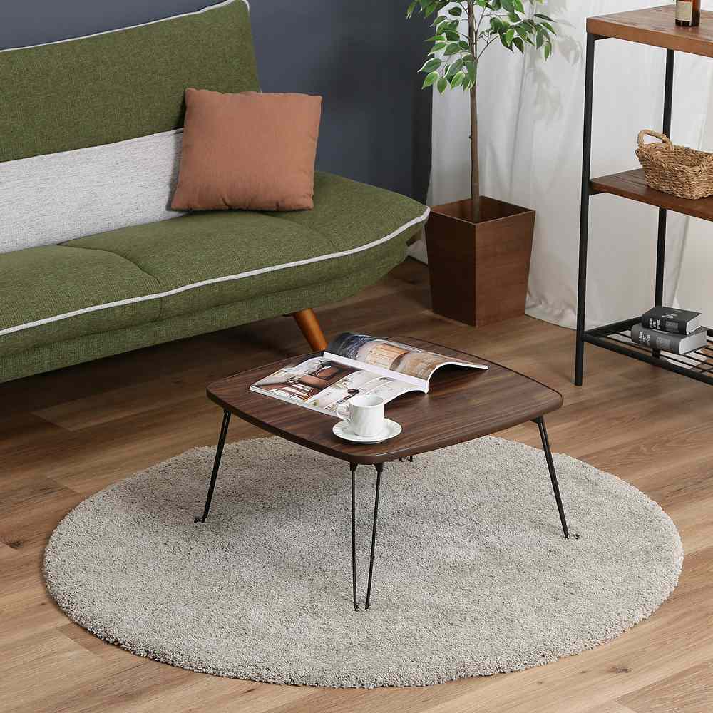 少し丸みのあるスクエア型がおしゃれな折りたたみローテーブル