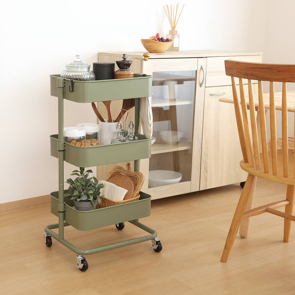 ネジいらずでクイック組み立て!バスケットの高さを調整できるトローリーワゴン