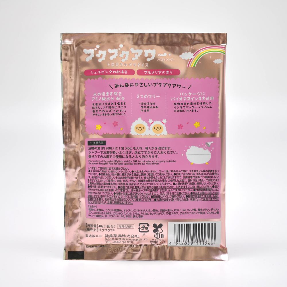 ボリューム泡にプルメリア香り。 水道水に含まれる塩素を除去するアミノ酸成分を配合し、さら湯のピリピリ感を和らげお肌にやさしい湯ざわりに。