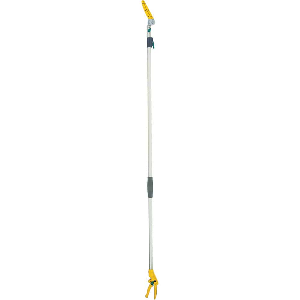 ●超軽量タイプです。●まとめて刈り込みができる長刃仕様です。●キャッチ機構で切った枝や果実を落とさず収穫できます。●2段式1.8m~3m(13段階伸縮)タイプです。●高枝専用ノコギリを付ければ太い枝もカットできます。●切断能力(mm):8●刃長(mm):117●全長(mm):1800~3000●全長:1800~3000mm 質量950g