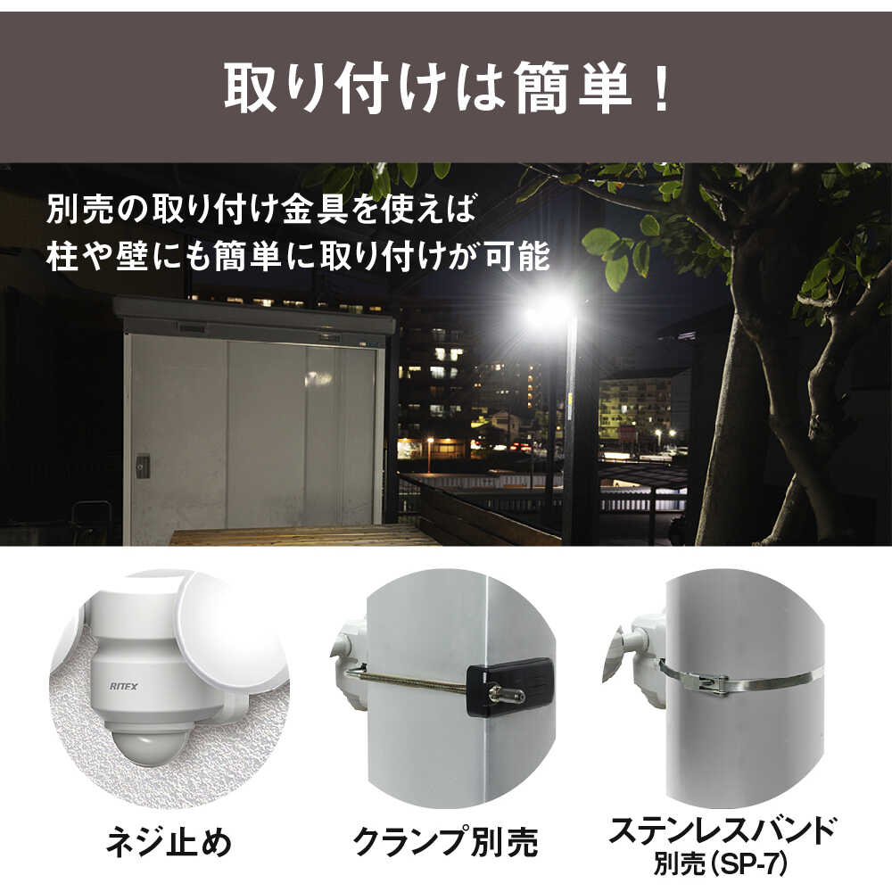 ●探知センサーで自動点灯、消灯します。●コンパクトなボディながら900ルーメンの明るさです。●広範囲を照らせる2灯式です。●ライトの方向が自由自在に動き、明かりがほしい狭い通路やコーナーの両側も照らせます。●幅(mm):188●奥行(mm):80●高さ(mm):107●光源色:白●使用電球(W):5W×2●消費電流(W):11●電源:AC100V●点灯保持時間:30秒●明るさ(lm):900●電源(V):AC100V●本体サイズ:高さ107mm 幅188mm 奥行き80●電源:AC100V電源(コード長:1.5m)●消費電:約11W(待機時:1.0W以下)●電球:5W×2 高輝度LED (設計寿命4万時間)●全光束:約900ルーメン●センサー機能(m):探知角度 水平約140° 探知距離(最大)約6●点灯時間:約30秒(固定)●点灯機能:周囲が暗い時のみ点灯 質量380g
