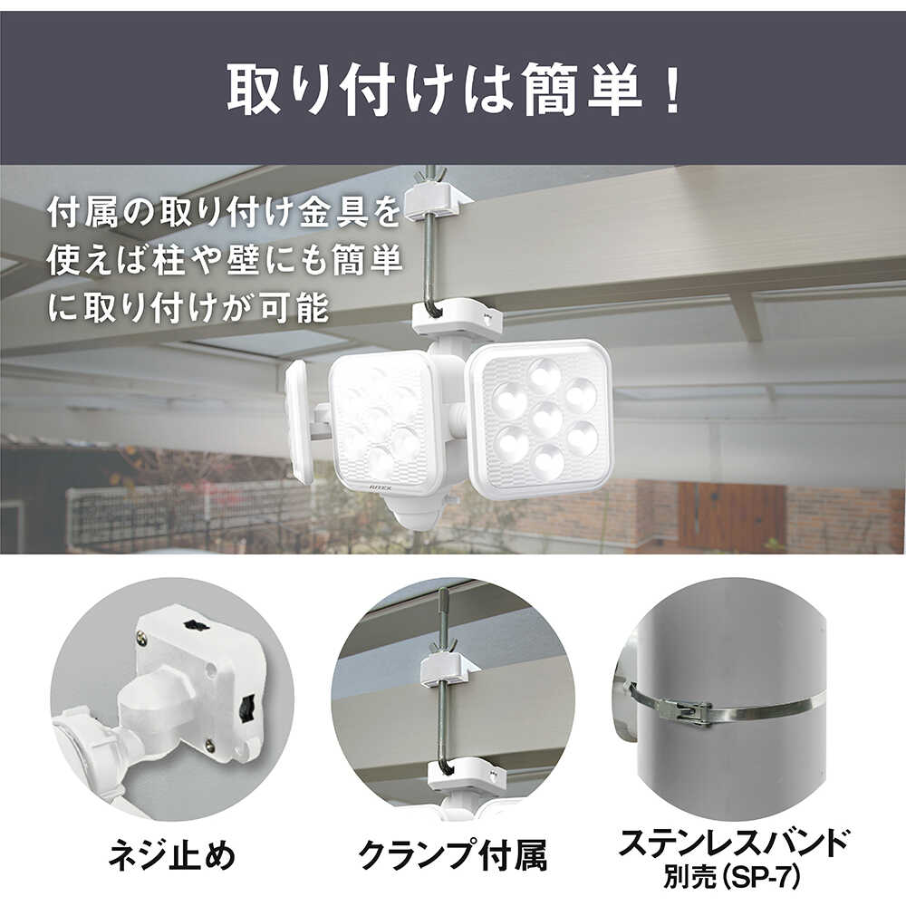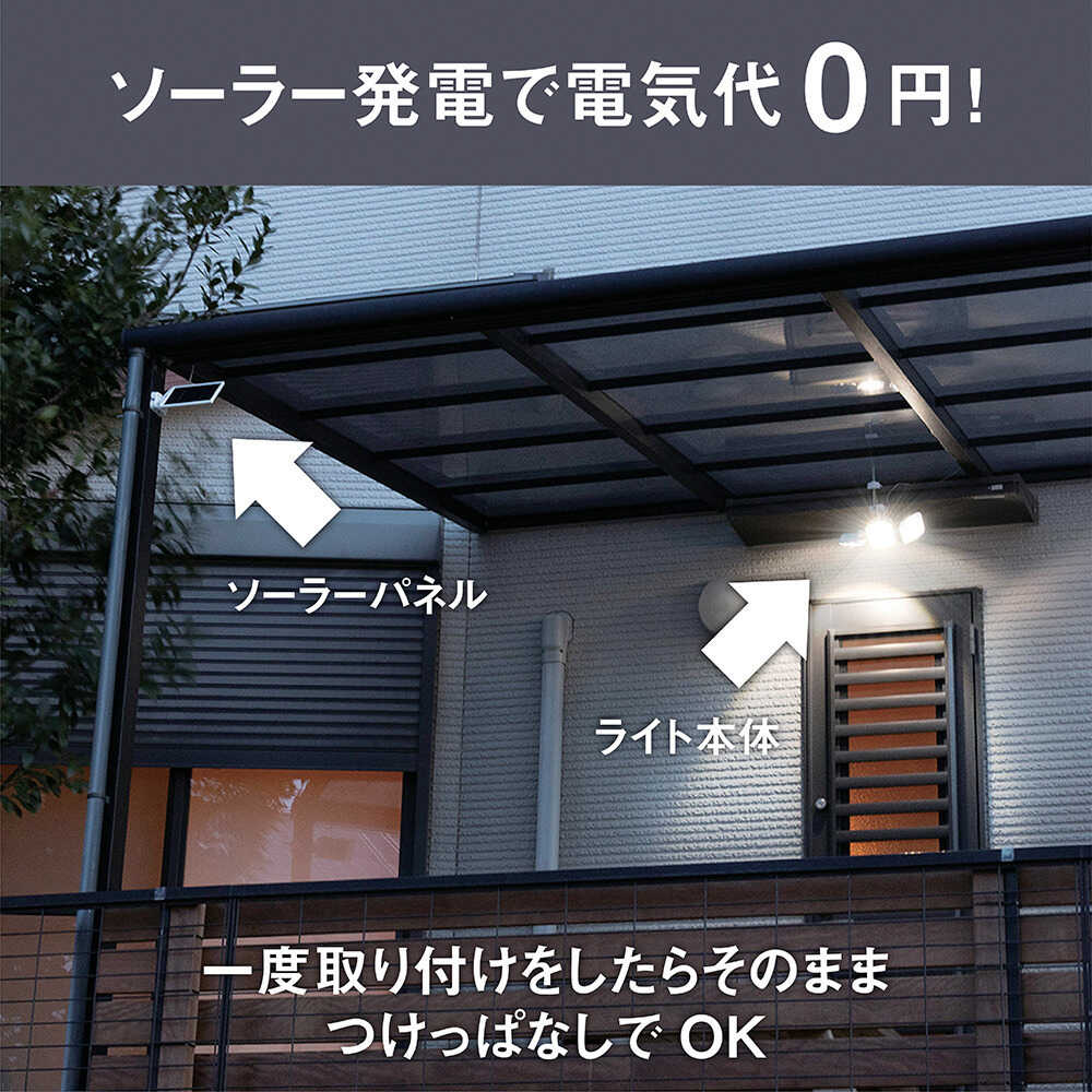 ●照射角度も自由自在です。●昼だけ点灯、夜だけ点灯、夜通し点灯と切り替え自由です。●バッテリー切れ防止、自動省エネモードのソーラー式です。●幅(mm):281●奥行(mm):124●高さ(mm):135●光源色:白色●使用電球(W):5×3灯●電源:ソーラー●明るさ(lm):1350●電源(V):ソーラー●保護等級:IP44●明るさ:1350lm●ソーラーパネル●サイズ:幅103×奥行き50×高さ188mm●重量:約270g●コードの長さ:5m●点灯時間:10秒(100%/50%/フラッシ) 質量720g